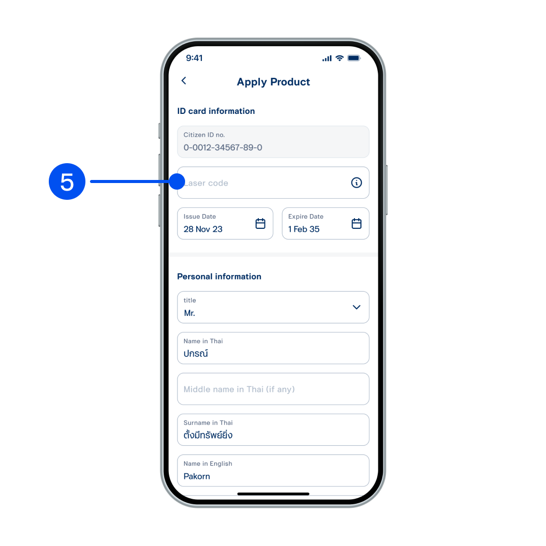 5. Enter your ID card laser code and recheck your personal information, then select "Next".