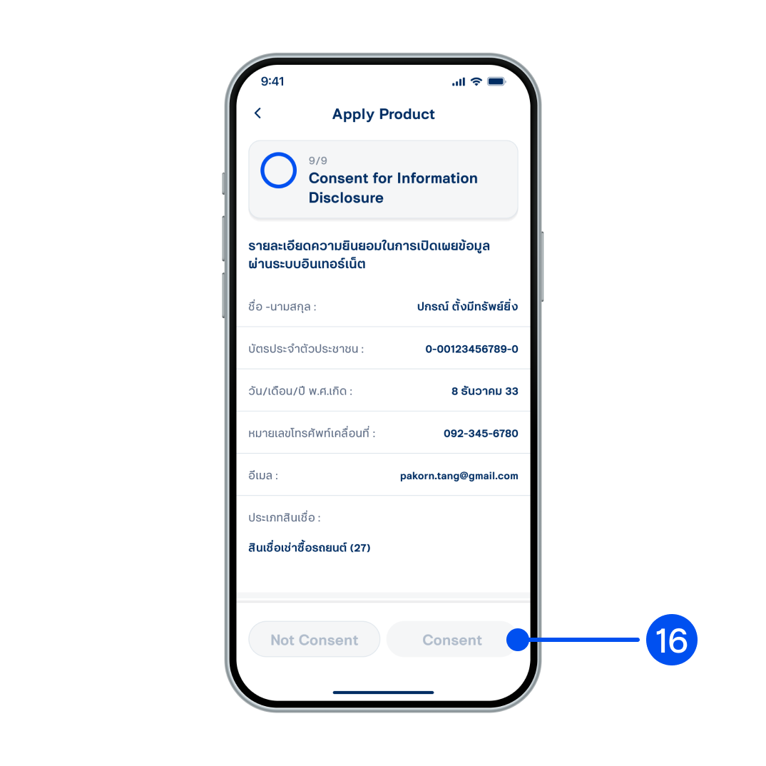 16. Review the details and read the terms and conditions for consenting to disclose information via the Internet, then select "Consent".