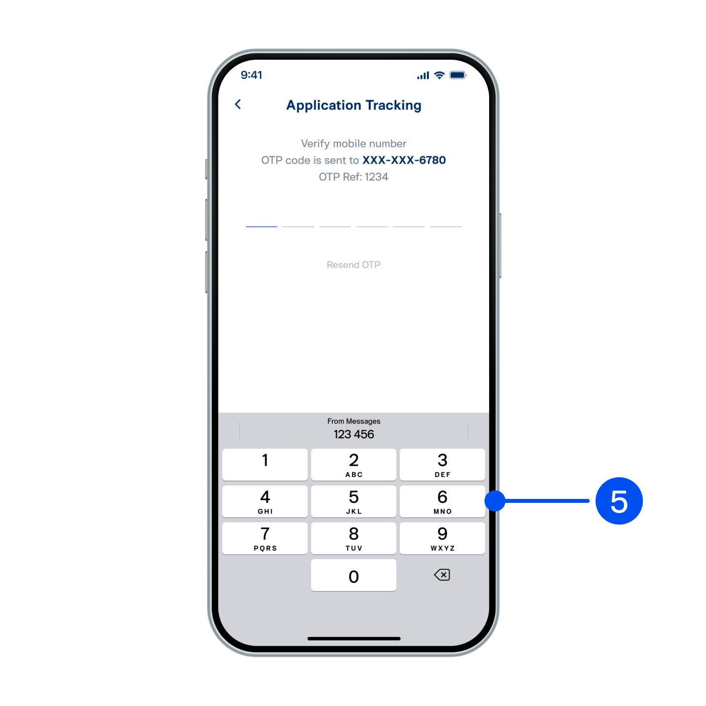 5. Enter OTP from SMS.