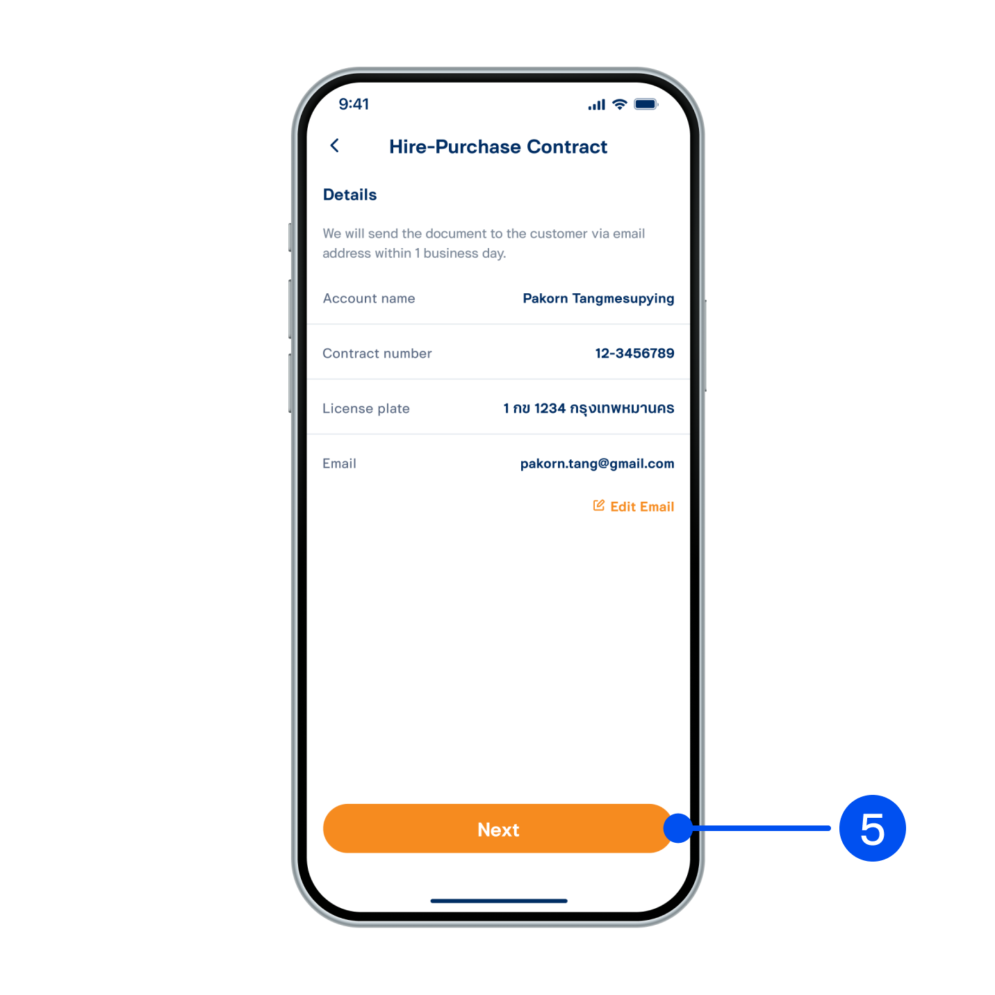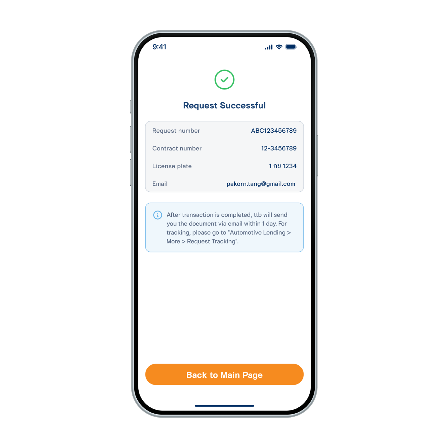 6. Hire-purchase contract has been requested successfully. The system will send the document to email within 1 day.