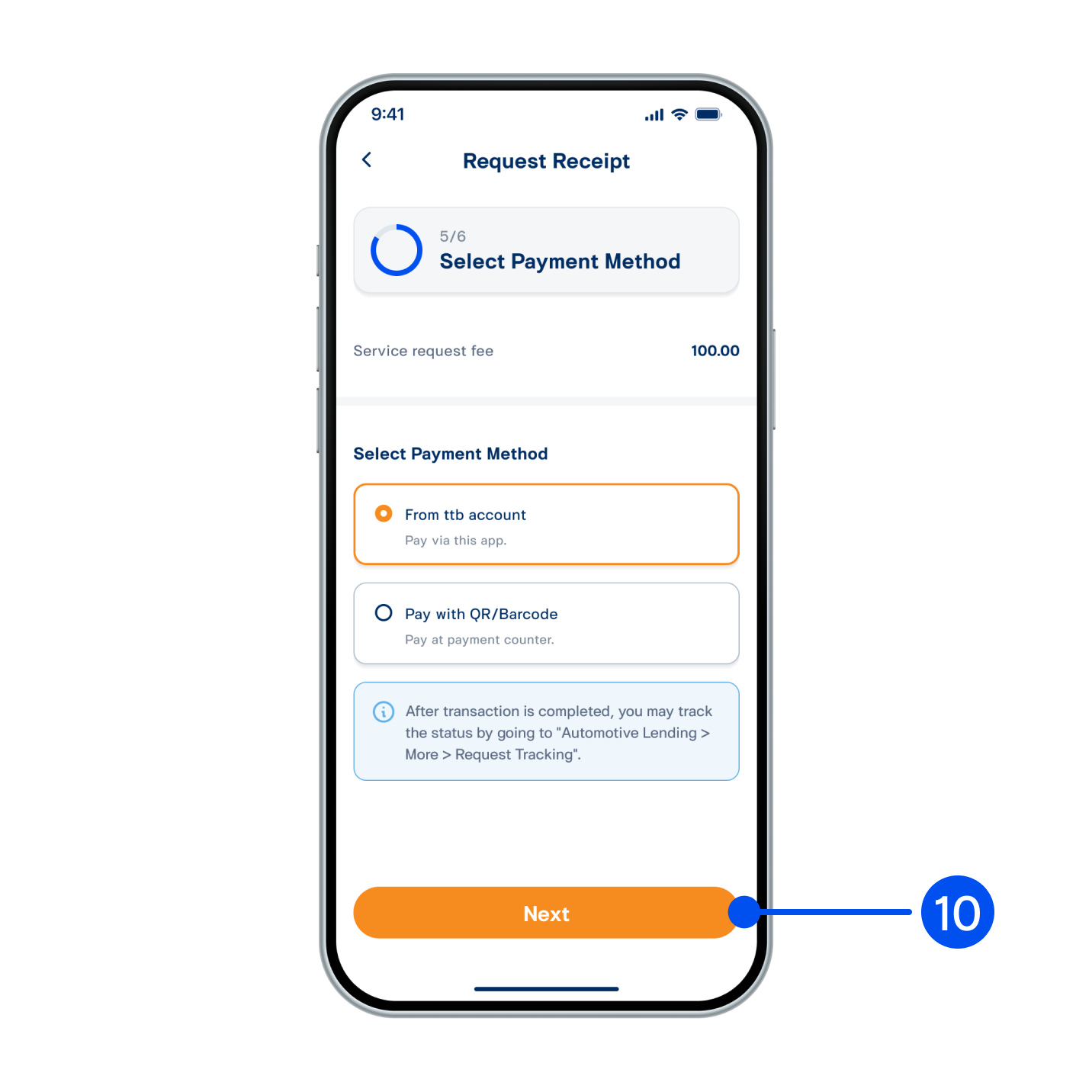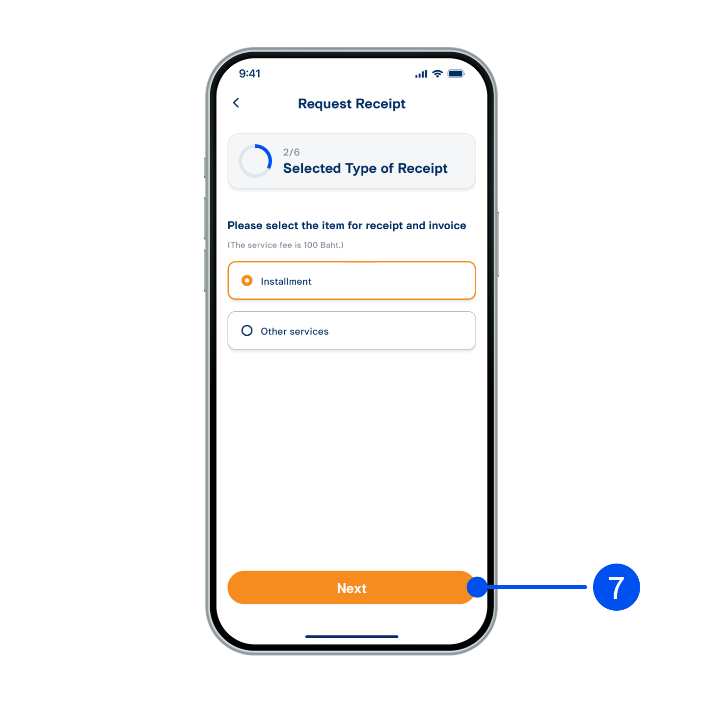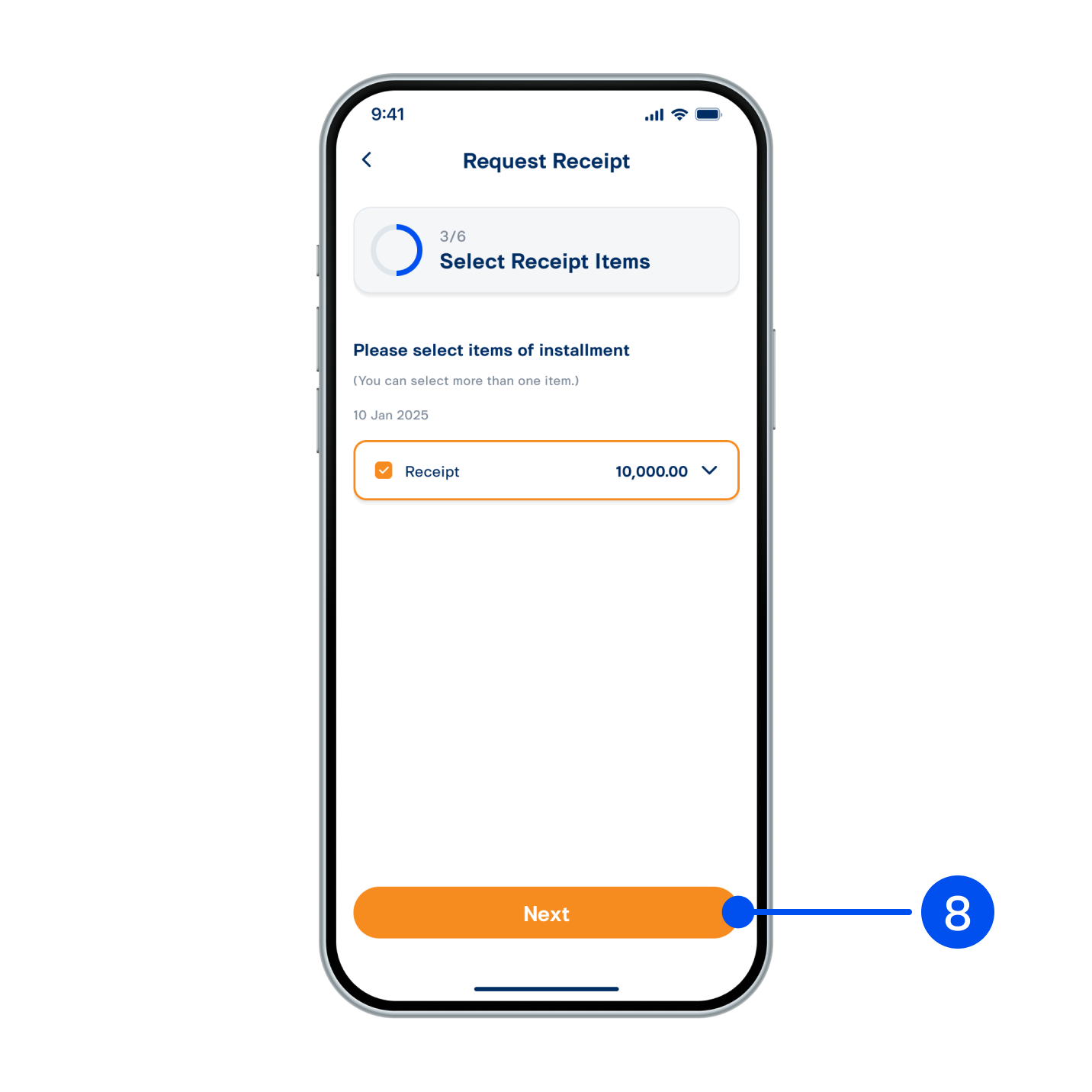 8. Select installment to request receipt. You can select more than 1 item, then select “Next”.