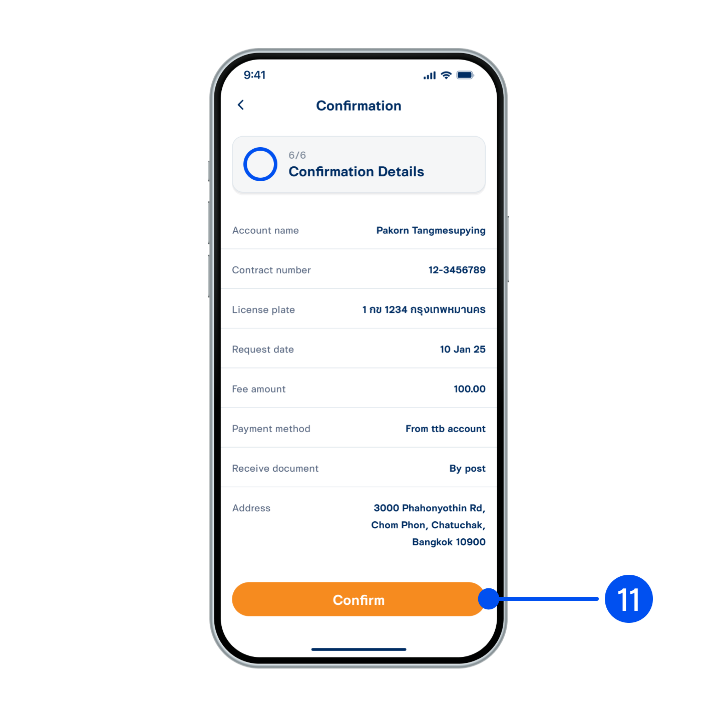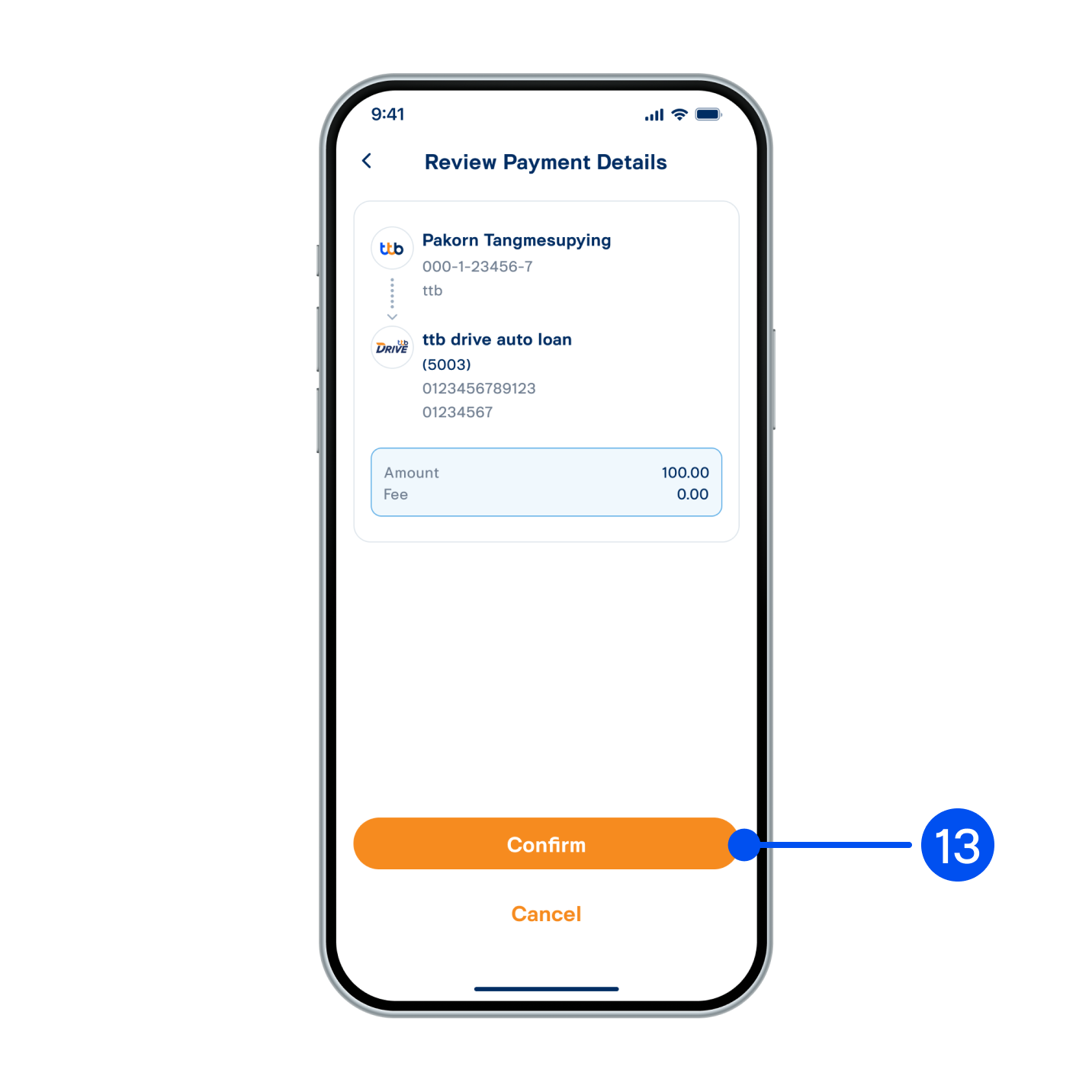11. If select payment from ttb account, review information. Then select “Confirm”.