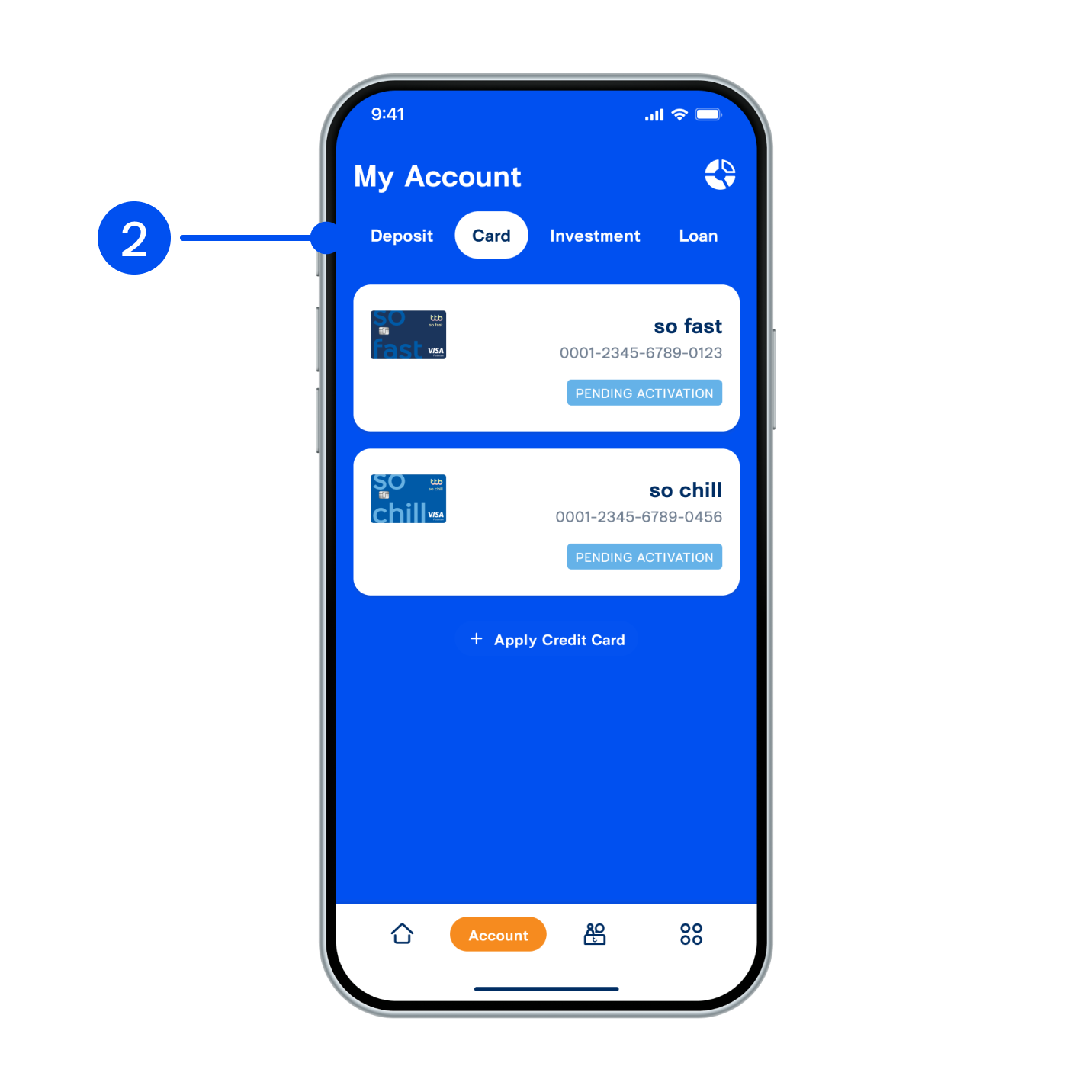2. Select “Card” tab at the top, then select the card with pending activation status.
