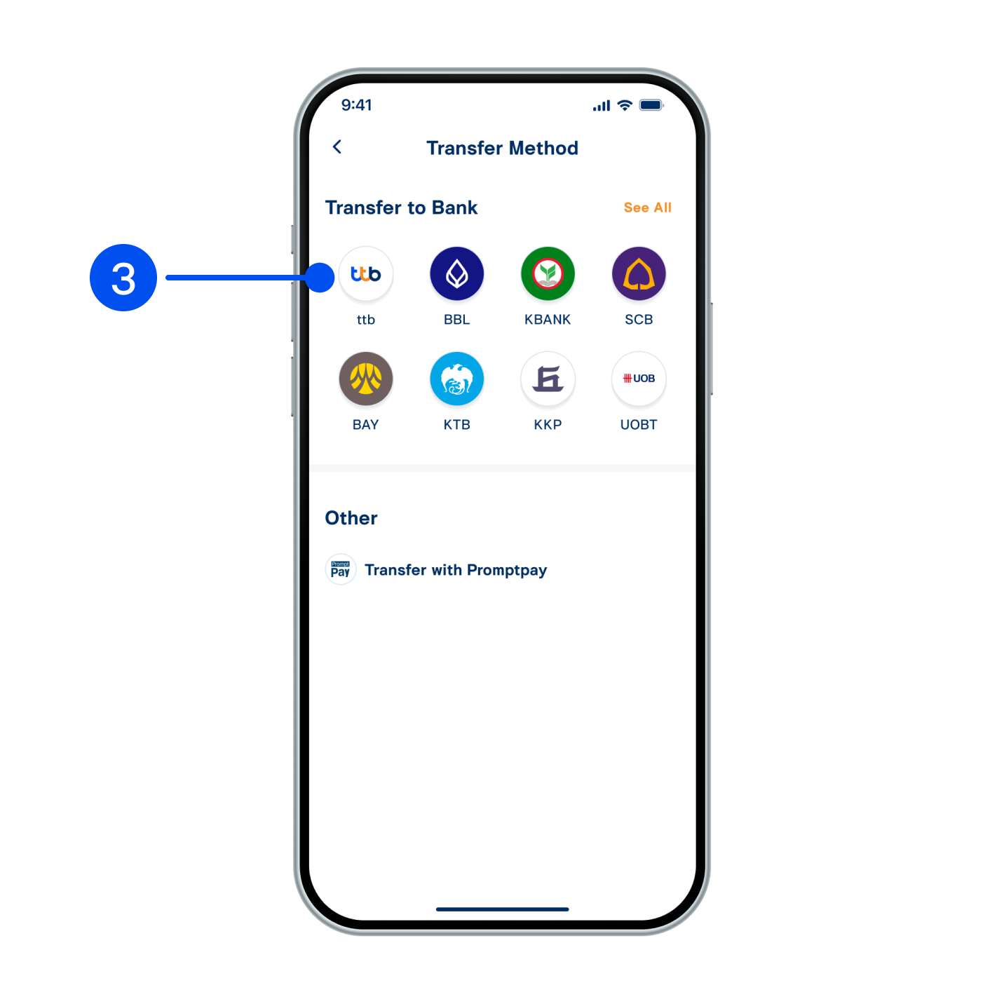 3. Select destination bank, or transfer with