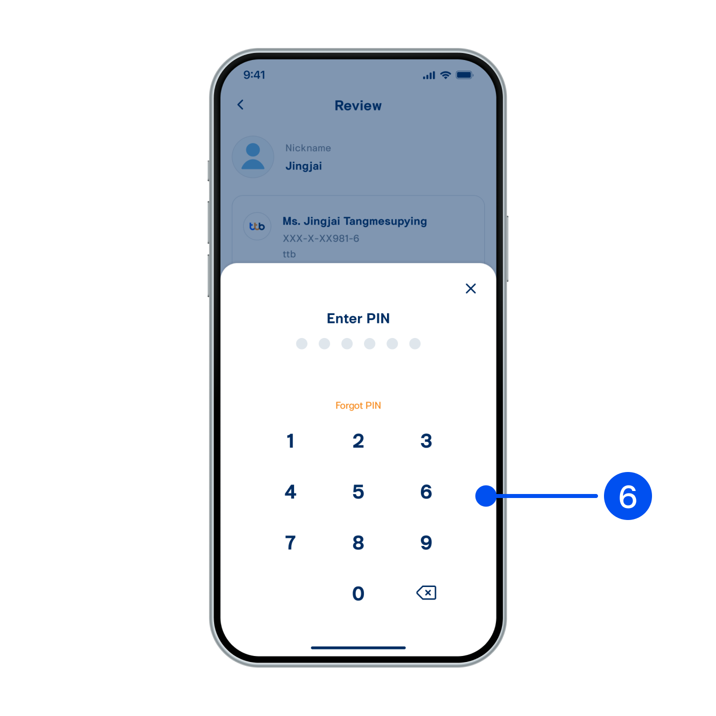 6. Enter PIN to confirm.