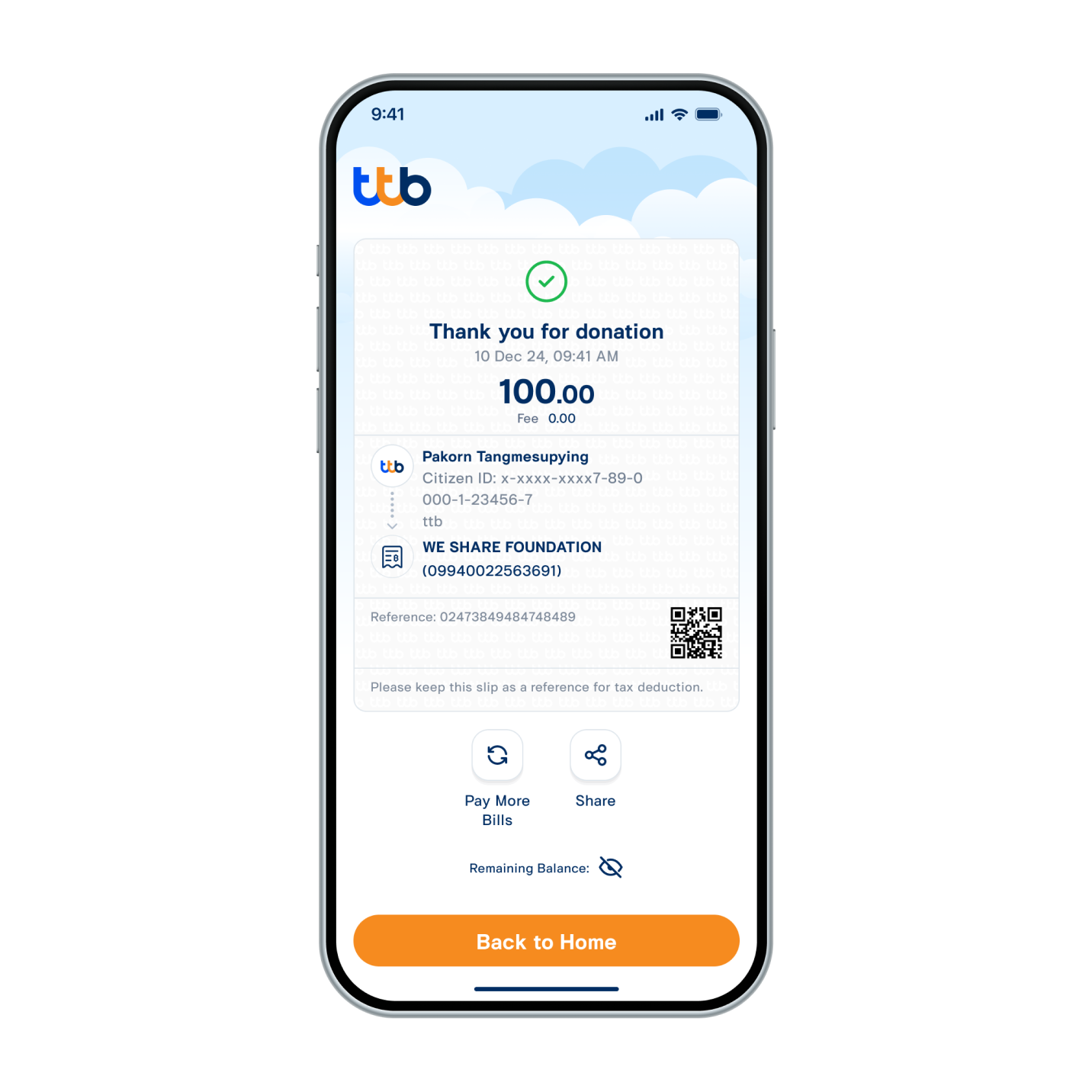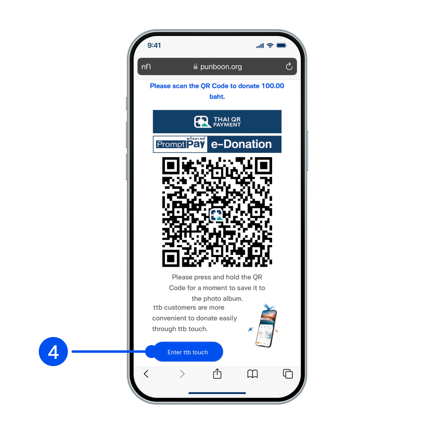 4. The system will display QR payment, payment via ttb touch can be processed by selecting “Enter ttb touch”.