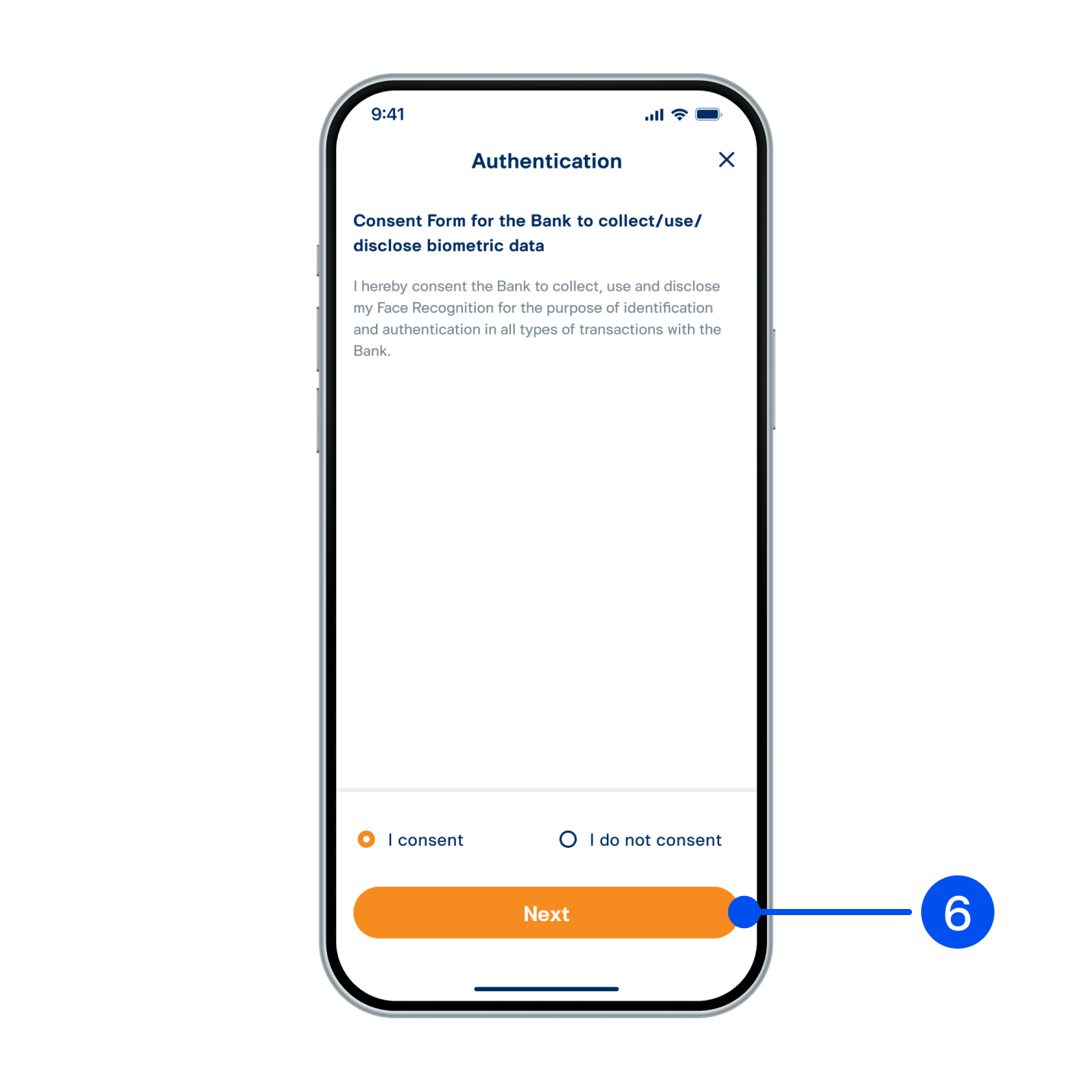6. Select "I Consent" to allow ttb to collect/use/disclose your biometric data, then select "Next".
