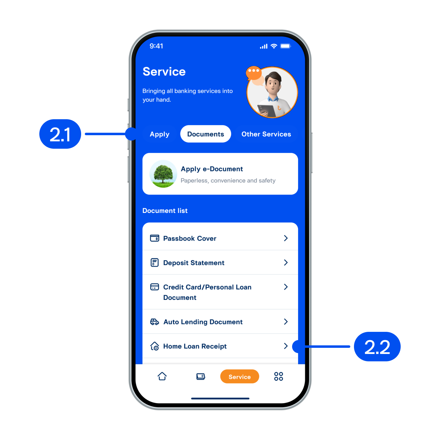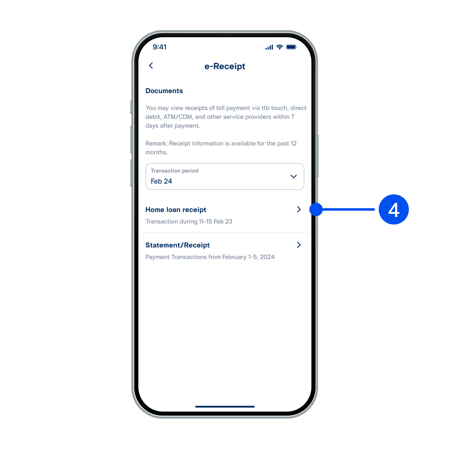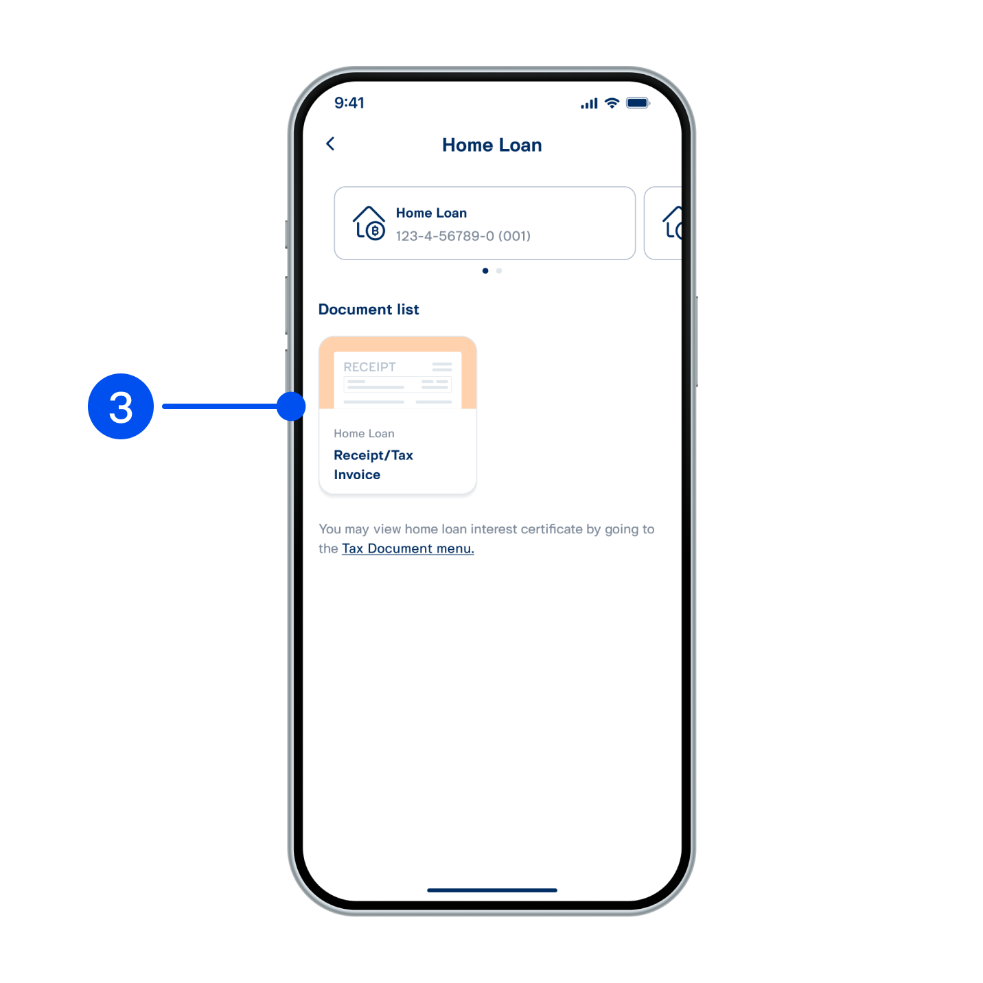 3. Select home loan account to view receipt, then tap "Receipt/Tax