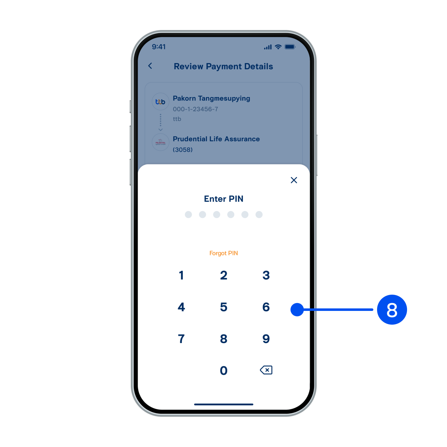 8. Enter PIN to confirm.