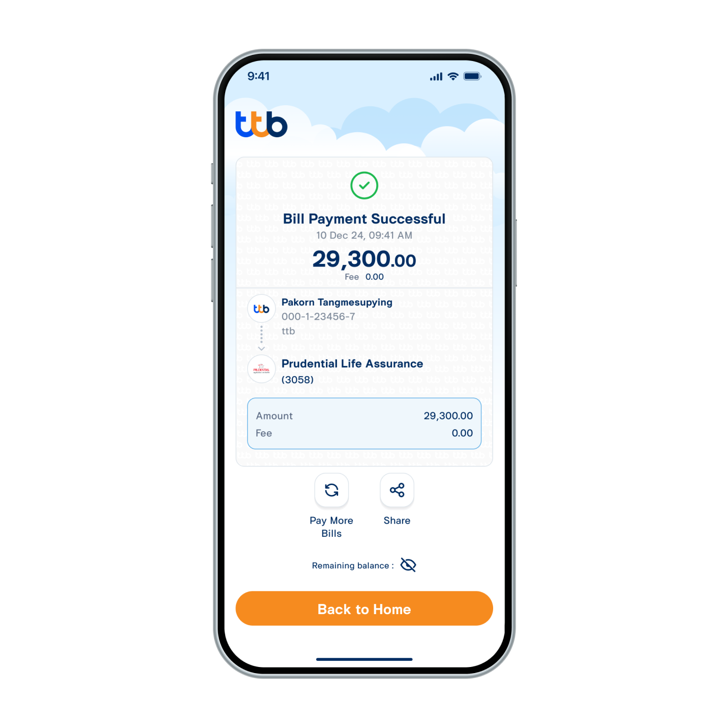 9. Insurance premium has been paid successfully.