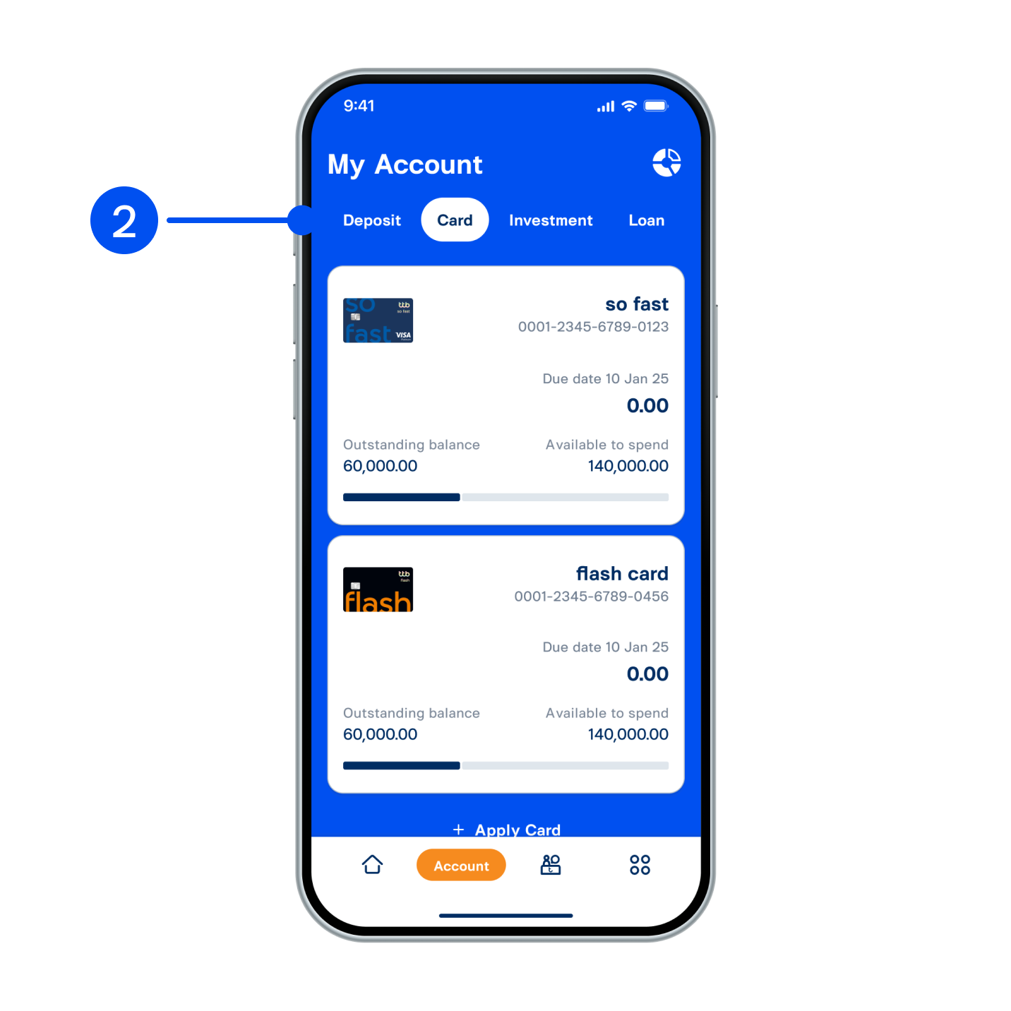 2. Select “Card” tab at the top, then select the card you wish to apply for e-Statement.