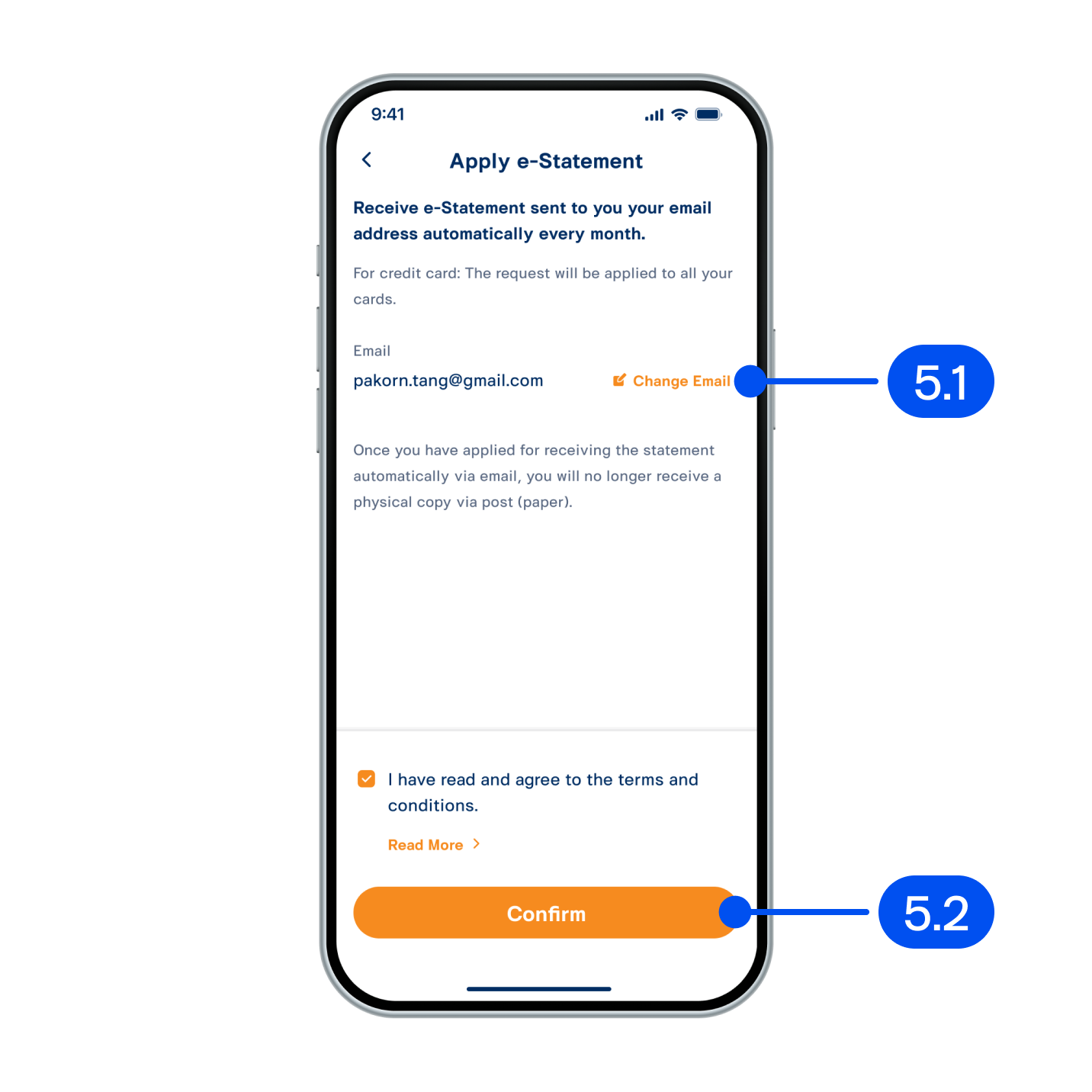 5.2) Accept terms and conditions, then select “Confirm” to proceed