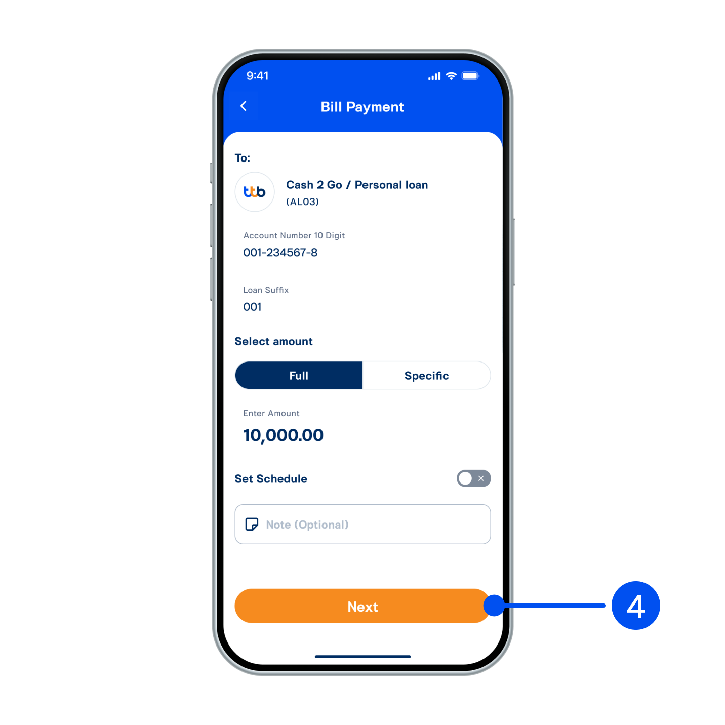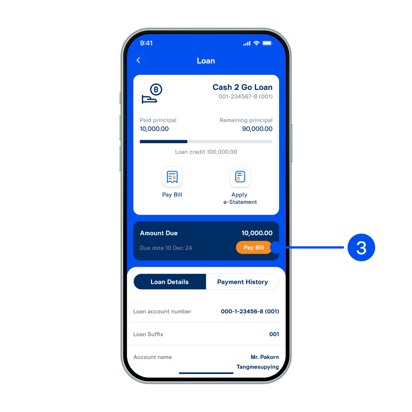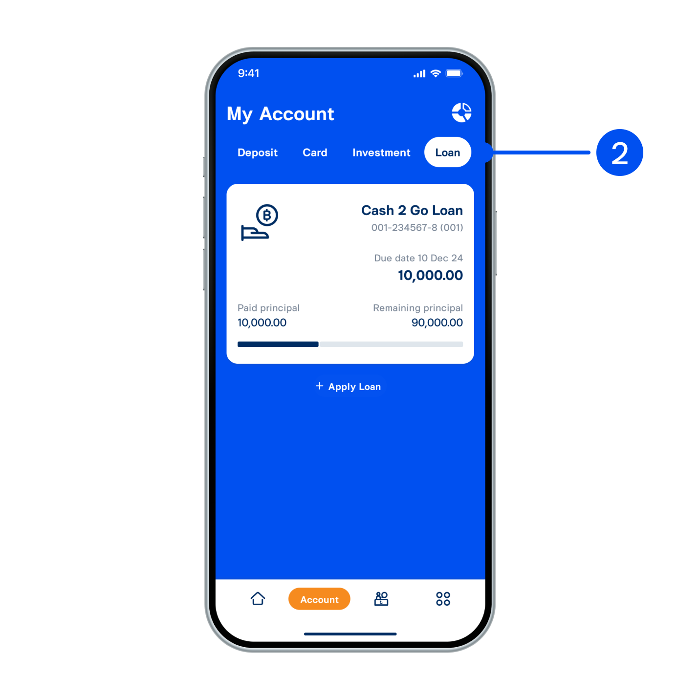 2. Select “Loan”, then select account to proceed.
