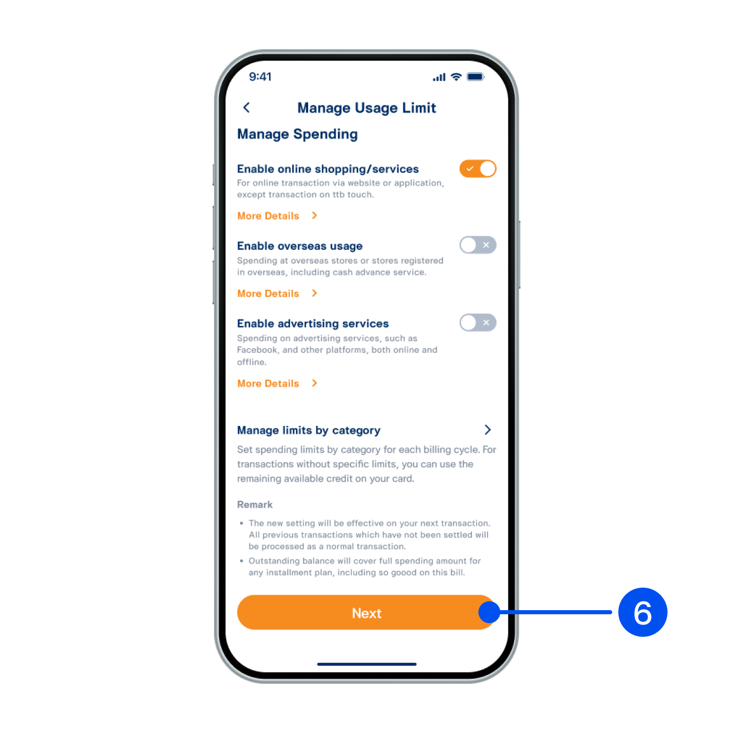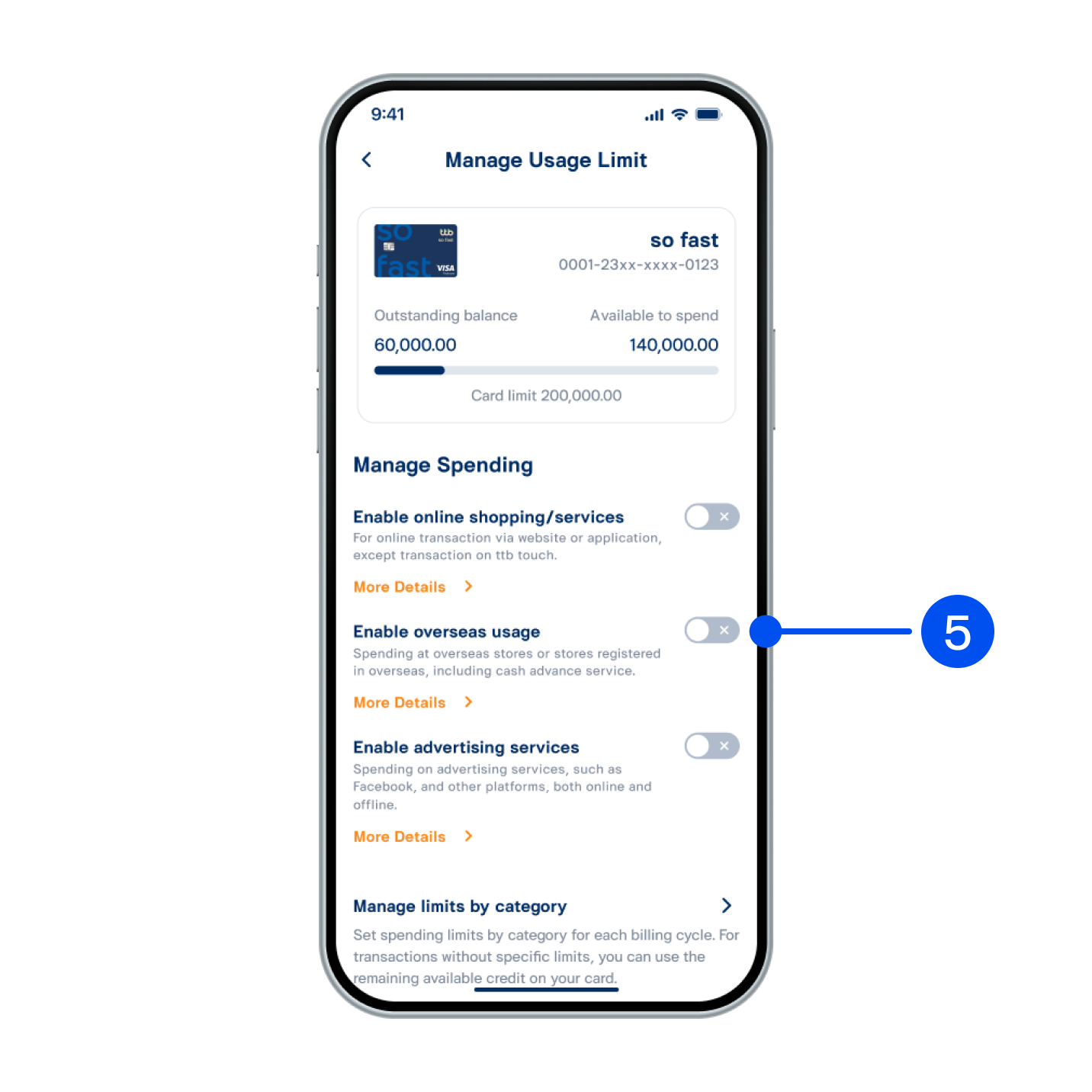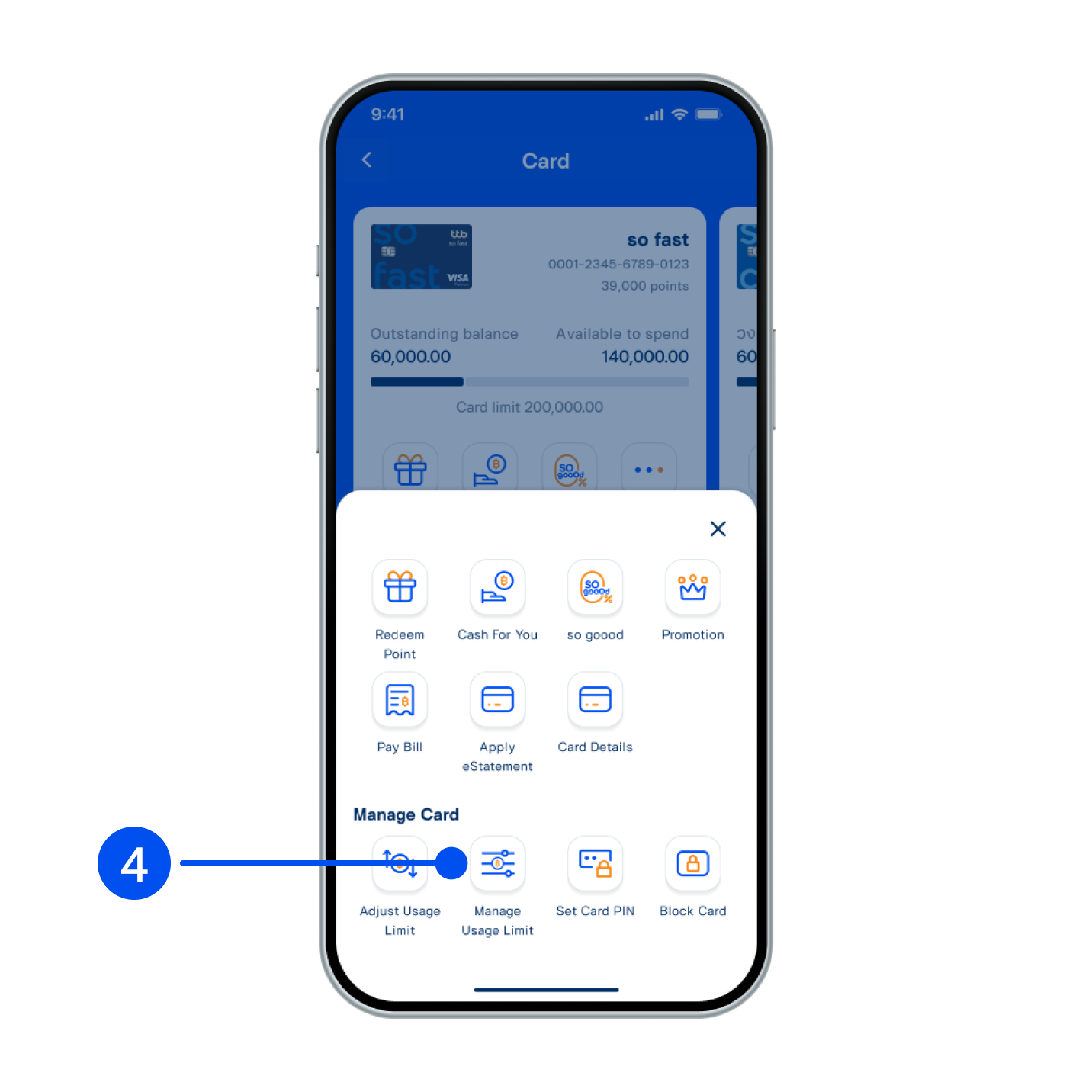 2. Select “Card” tab at the top, then select the card you wish to manage spending