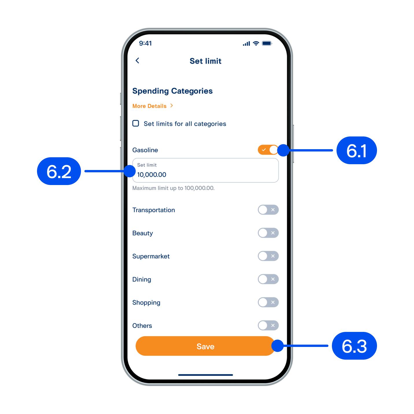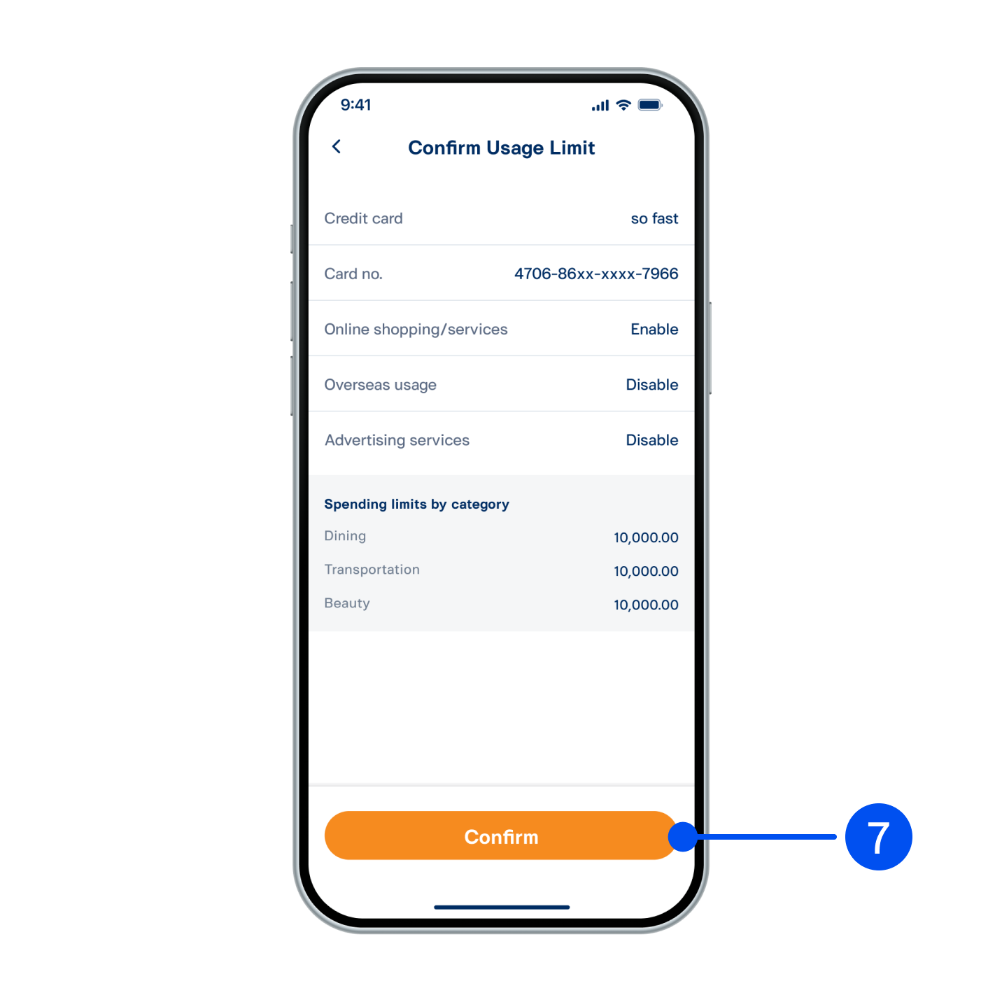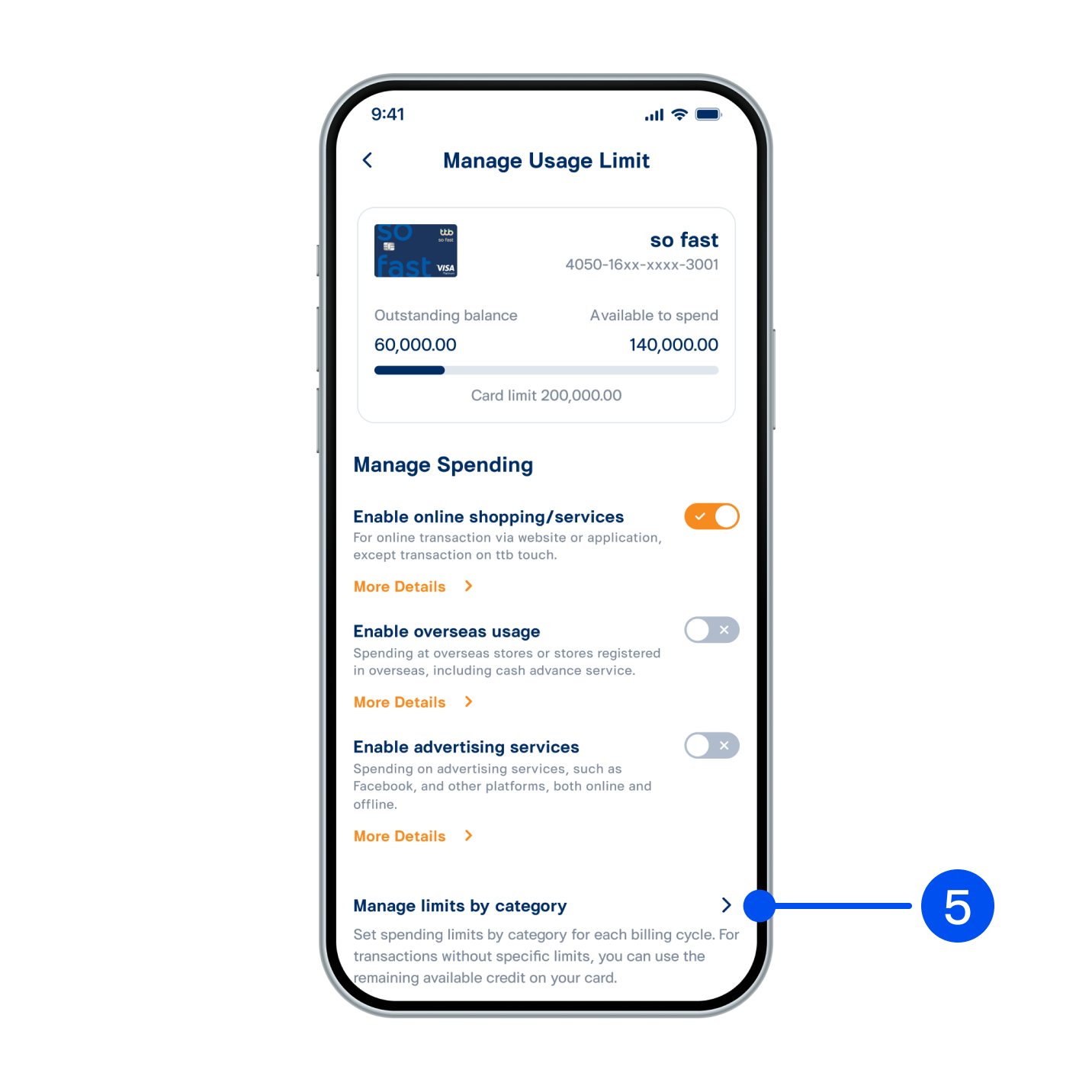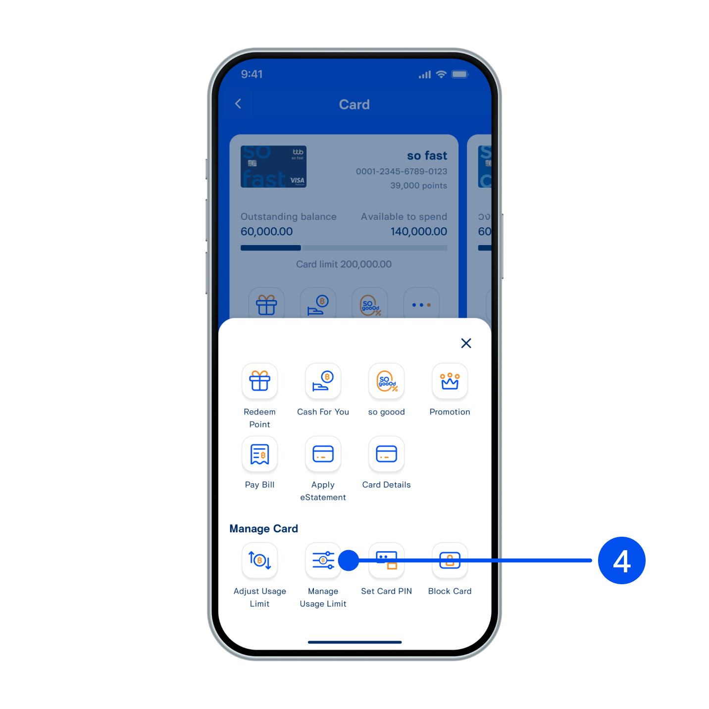 2. Select "Card" at the top, then select the card you wish to manage usage limit.