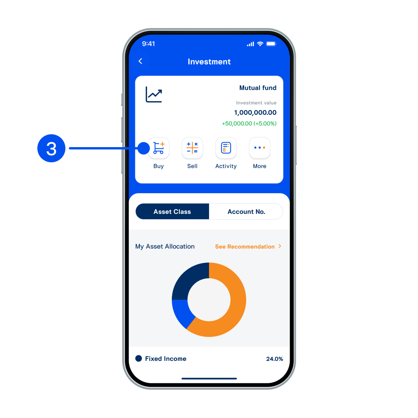 5. In Fund Information, the system displays Performance Data, Fund Allocation and Details, then Select “Buy” to proceed.
