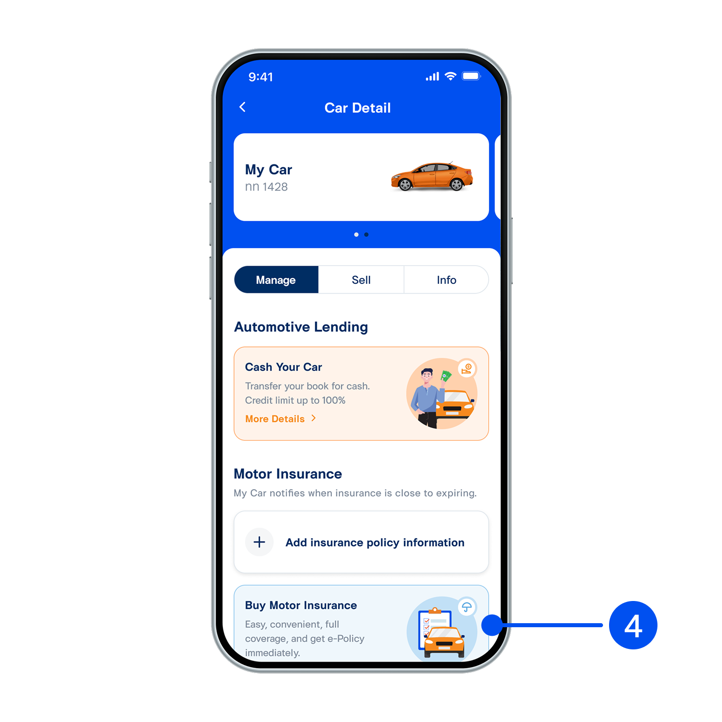 2. Select car or scroll down to “Other Services”, then select “Buy Motor Insurance”.
