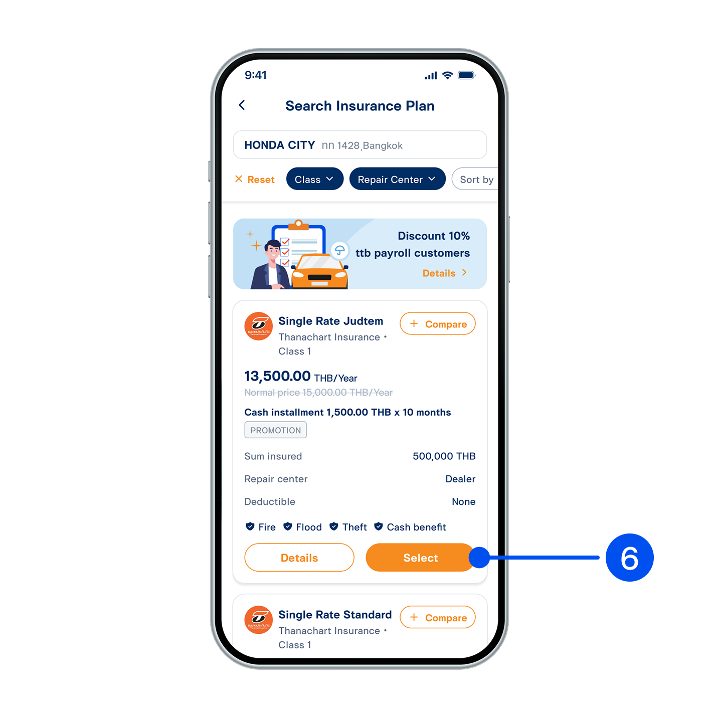 6. The list of insurance plans will be displayed, then ”Select” your desired plan.