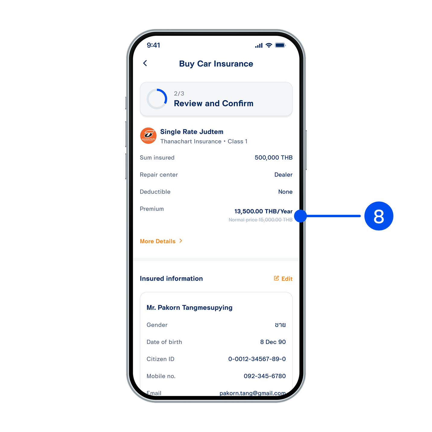 12. Wait for system to proceed for a moment. When it’s completed, the system will shown payment details. You can review your policy again under “My Car” widget.