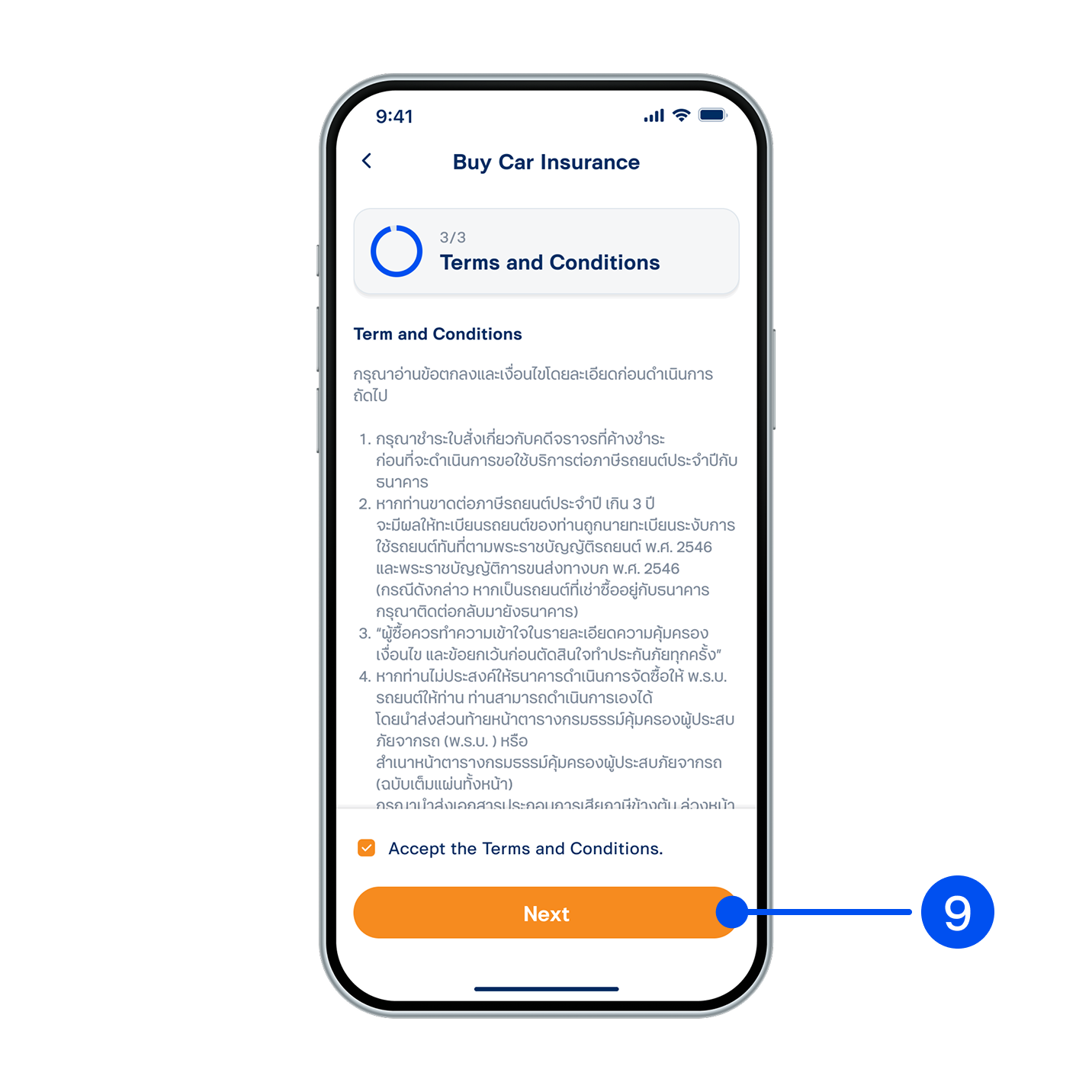 9. Review and accept Terms and Conditions, then tap “Next”.
