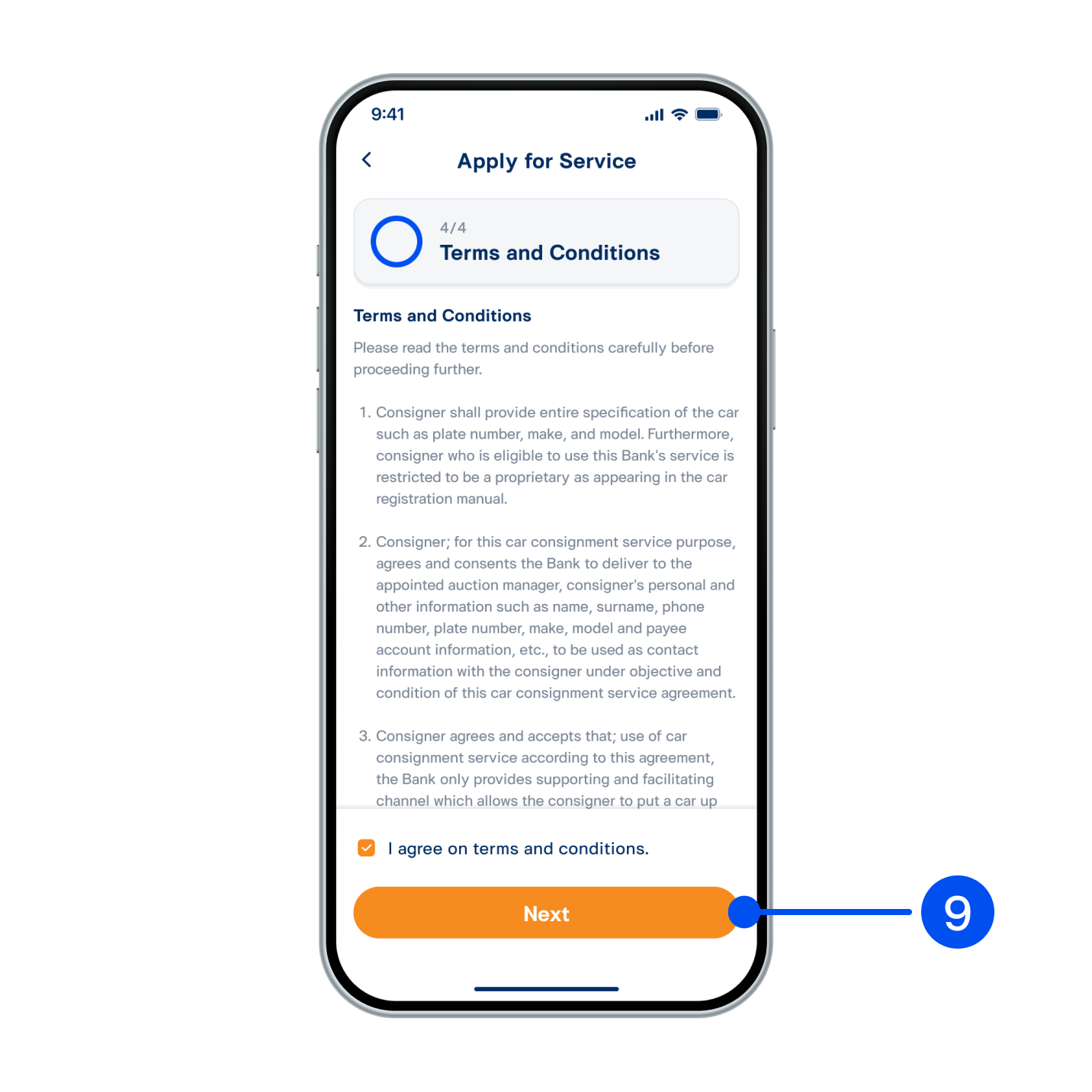 9. Review and accept terms and condition, then select “Next”.
