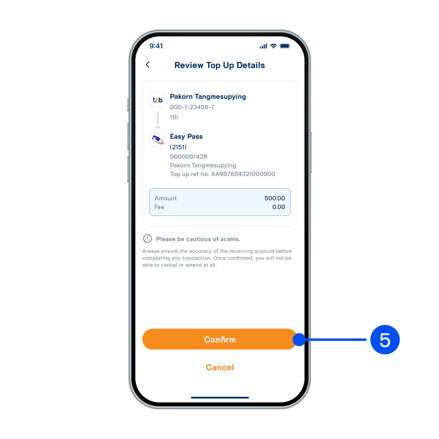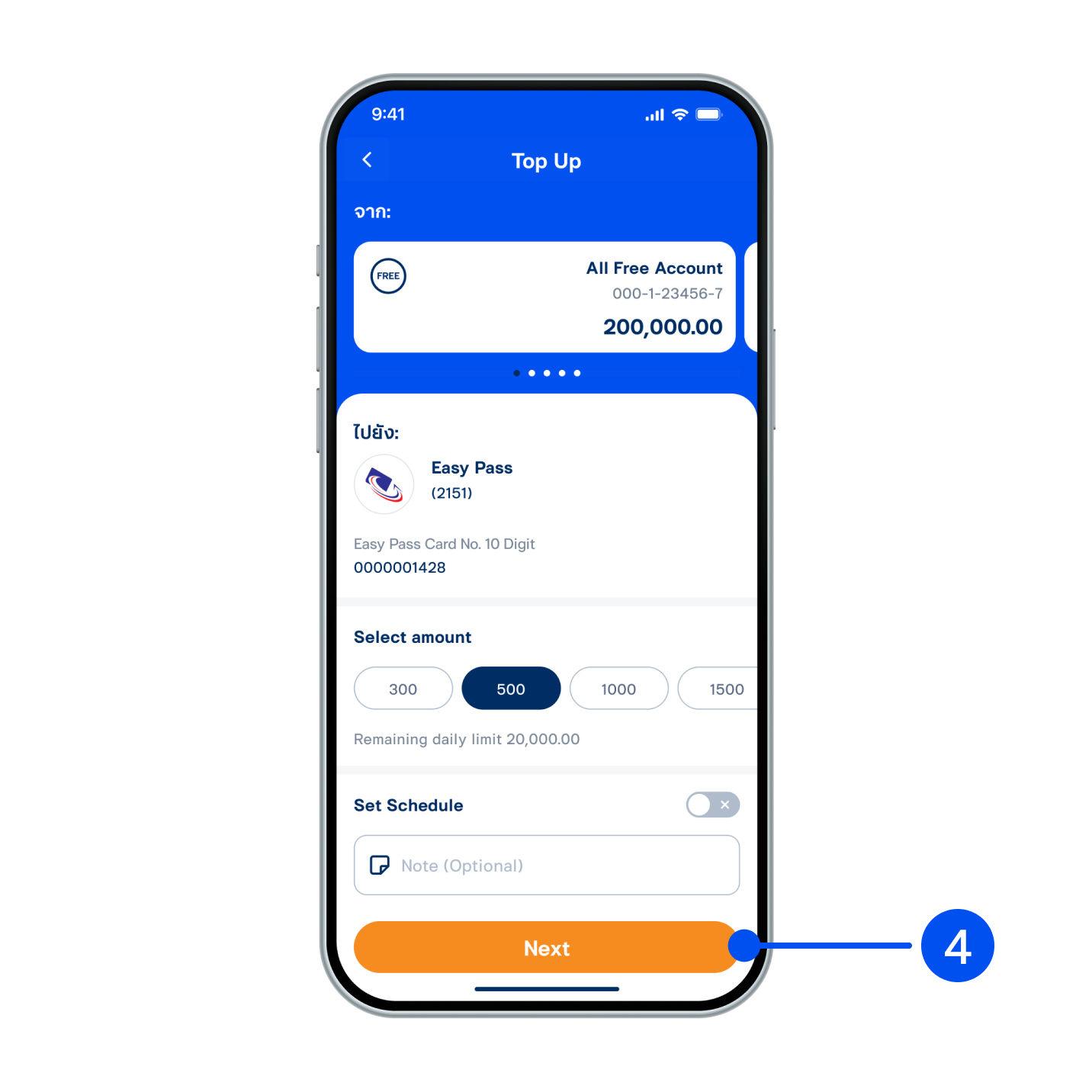 4. Slide left-right to select account. Select amount, then select “Next”.
