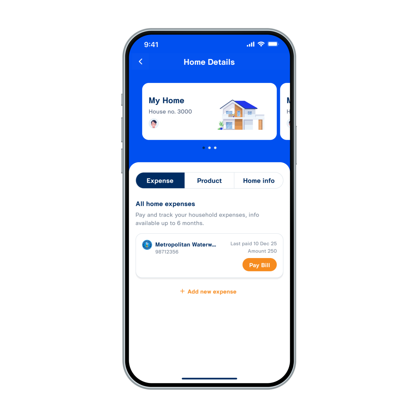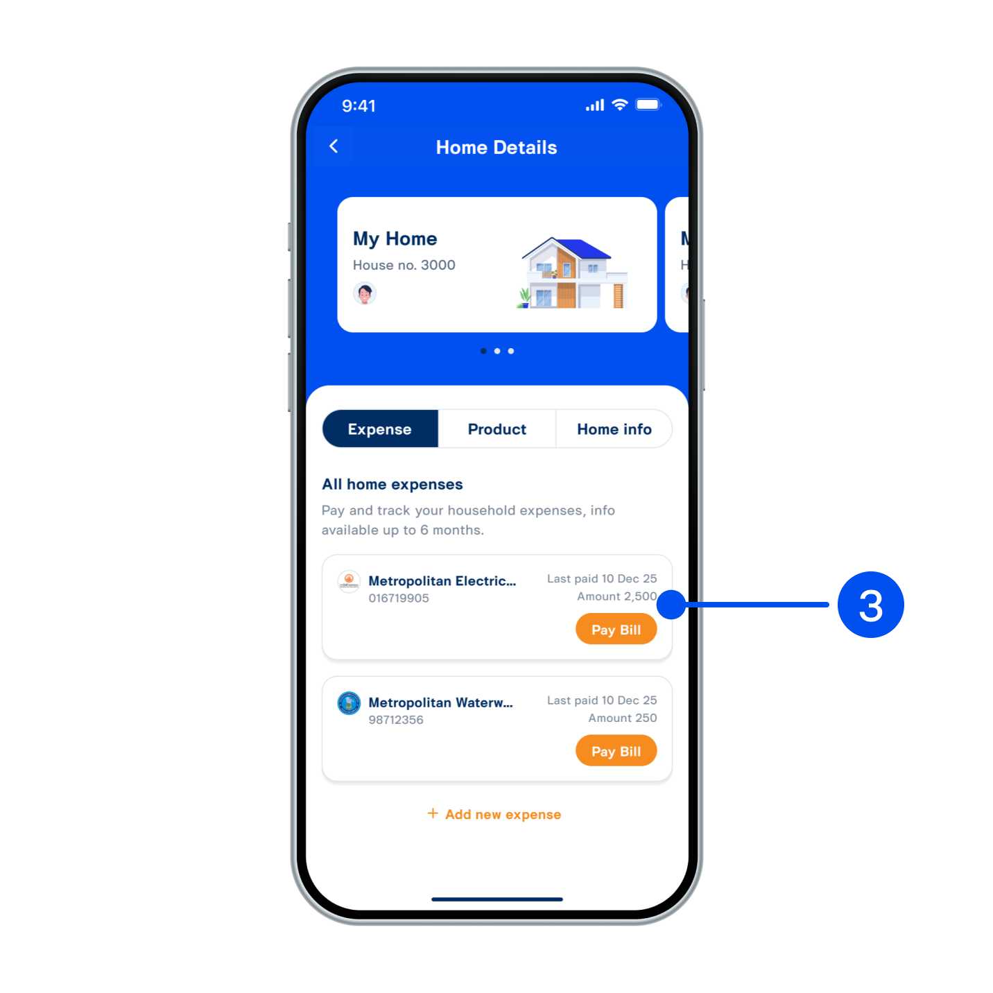 3. Go to the Home Details screen and select the 'Expense Bill Card' to view the details of that bill.