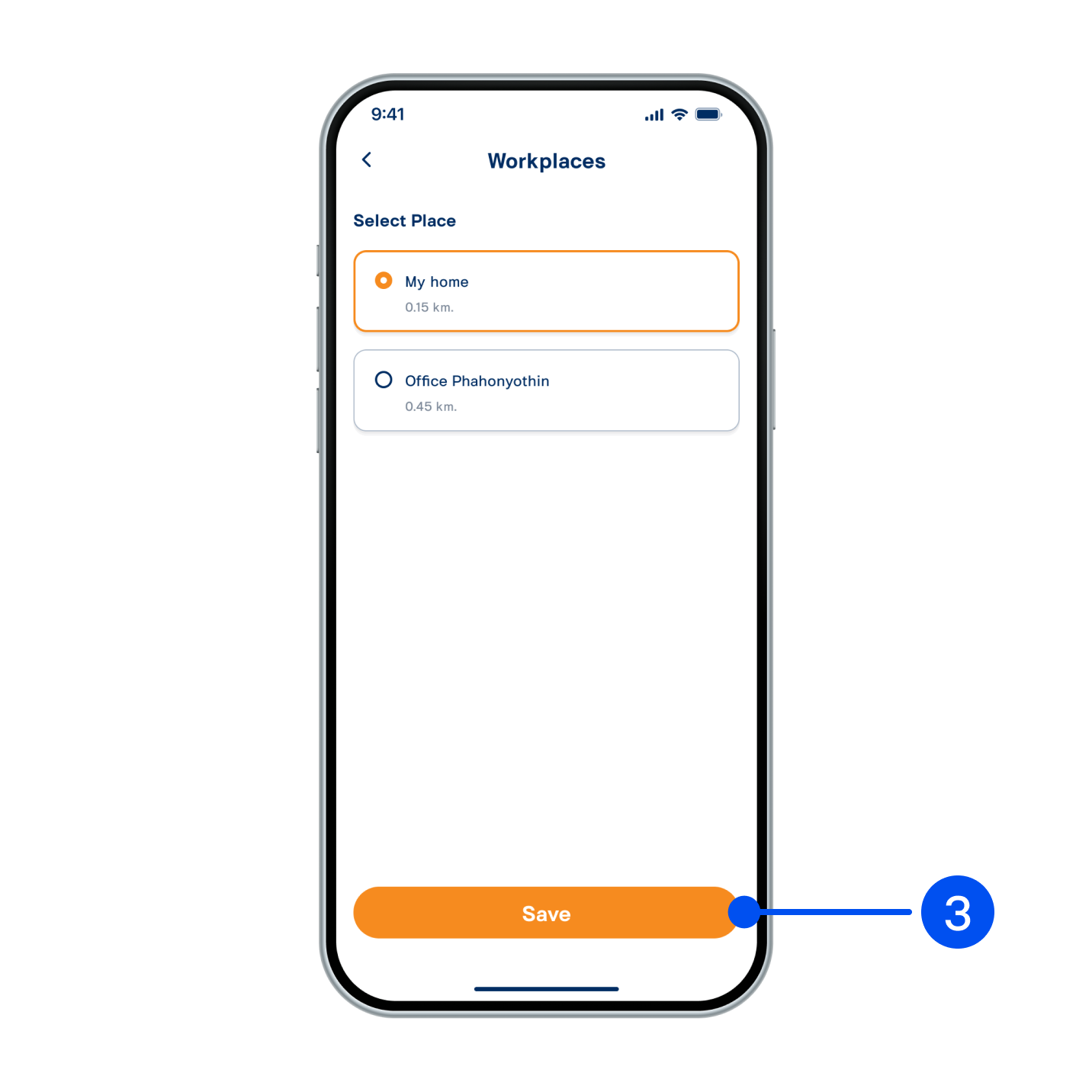 3. Select place to clock in, then select “Save”.