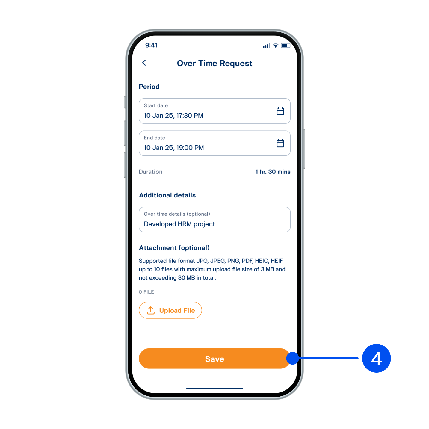 4. Select Preriod and enter Additional details. Then select “Save”.