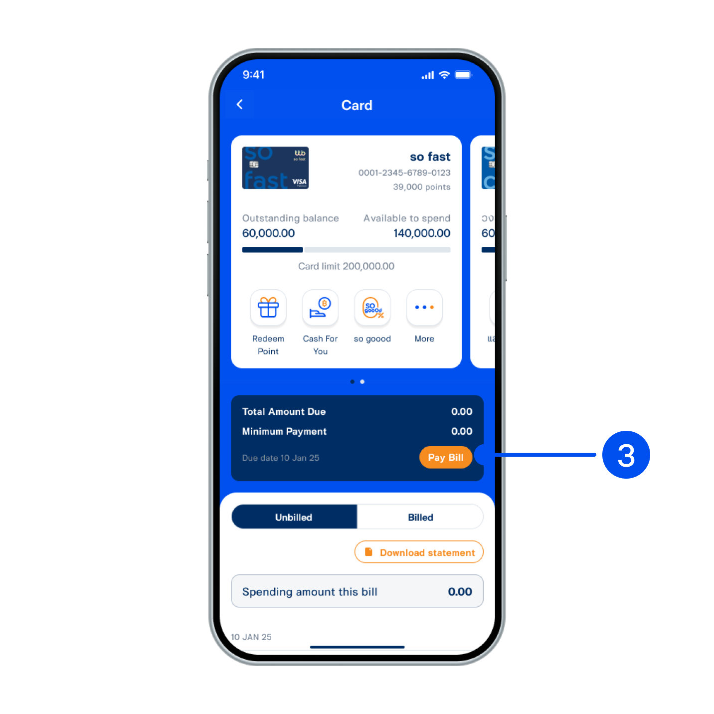 2. Select “Card” tab at the top, then select the card you wish to adjust credit limit.