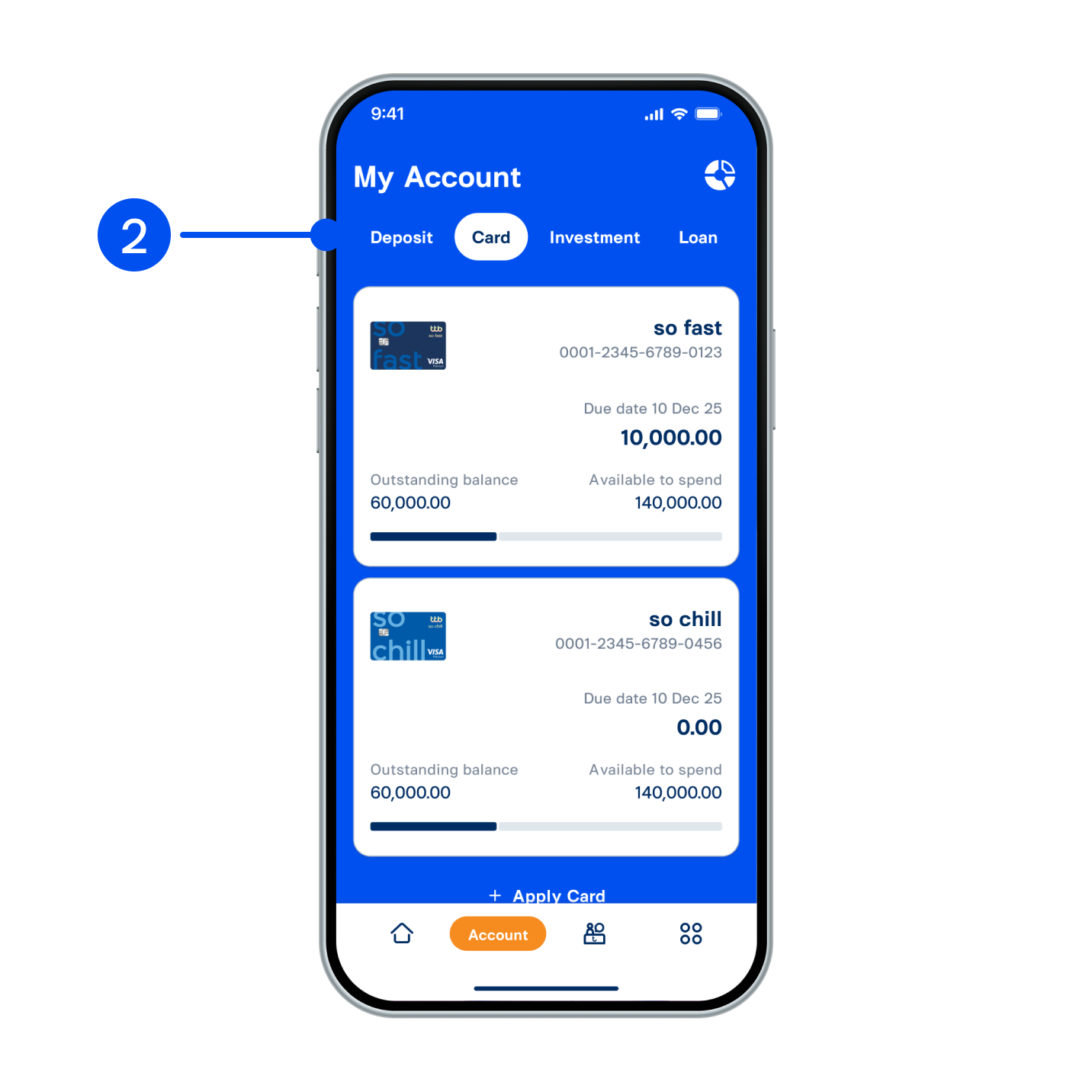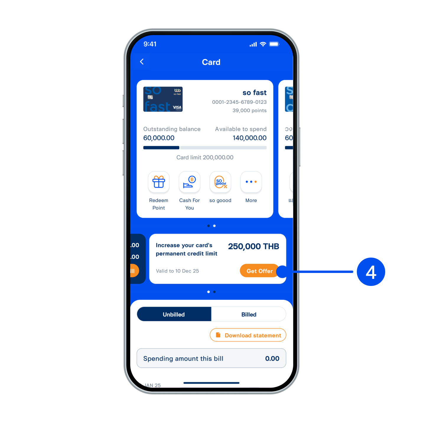 2. Select "Card" tab at the top, then select the card with a permanent credit limit increase offer.