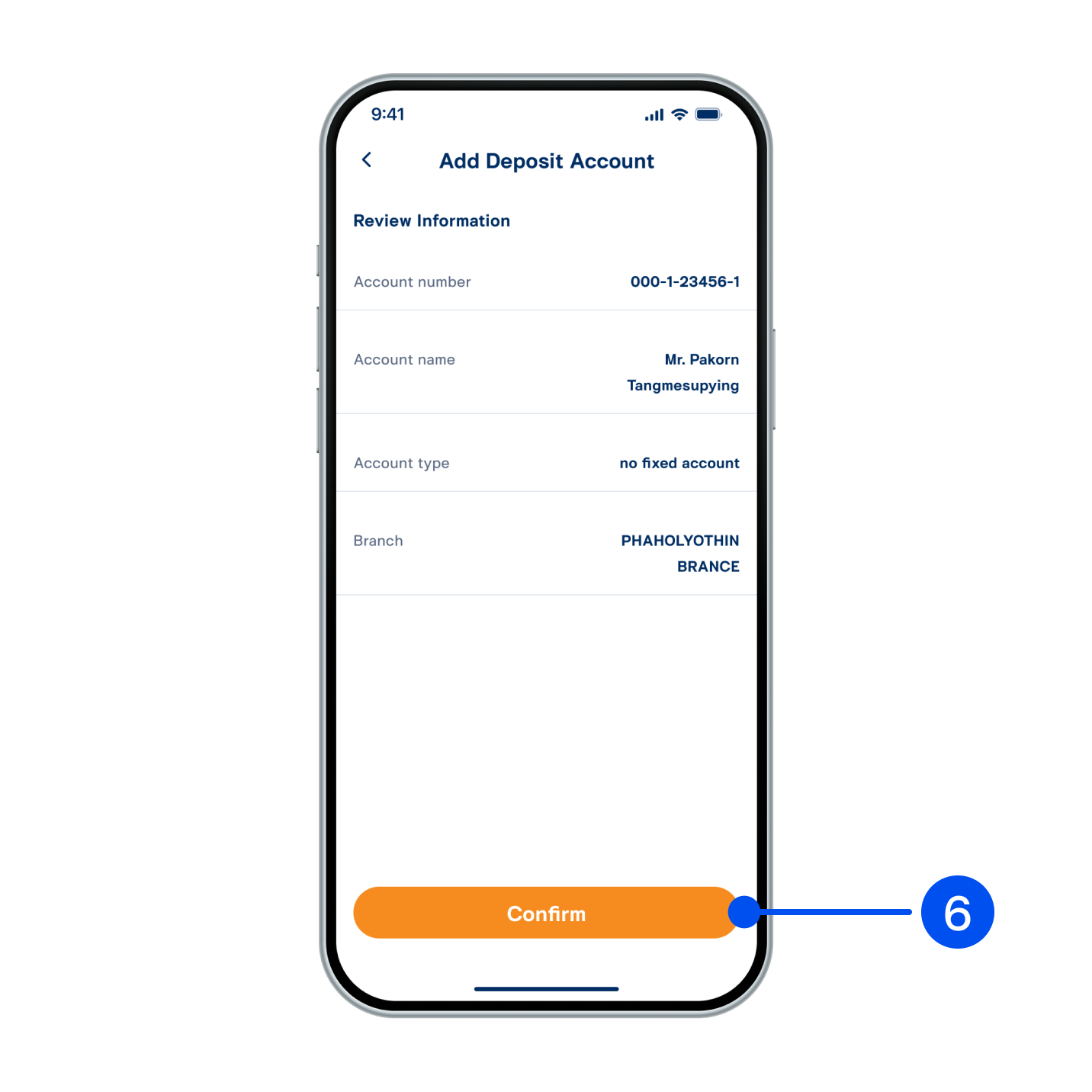 6. Review account information, then select “Confirm”.