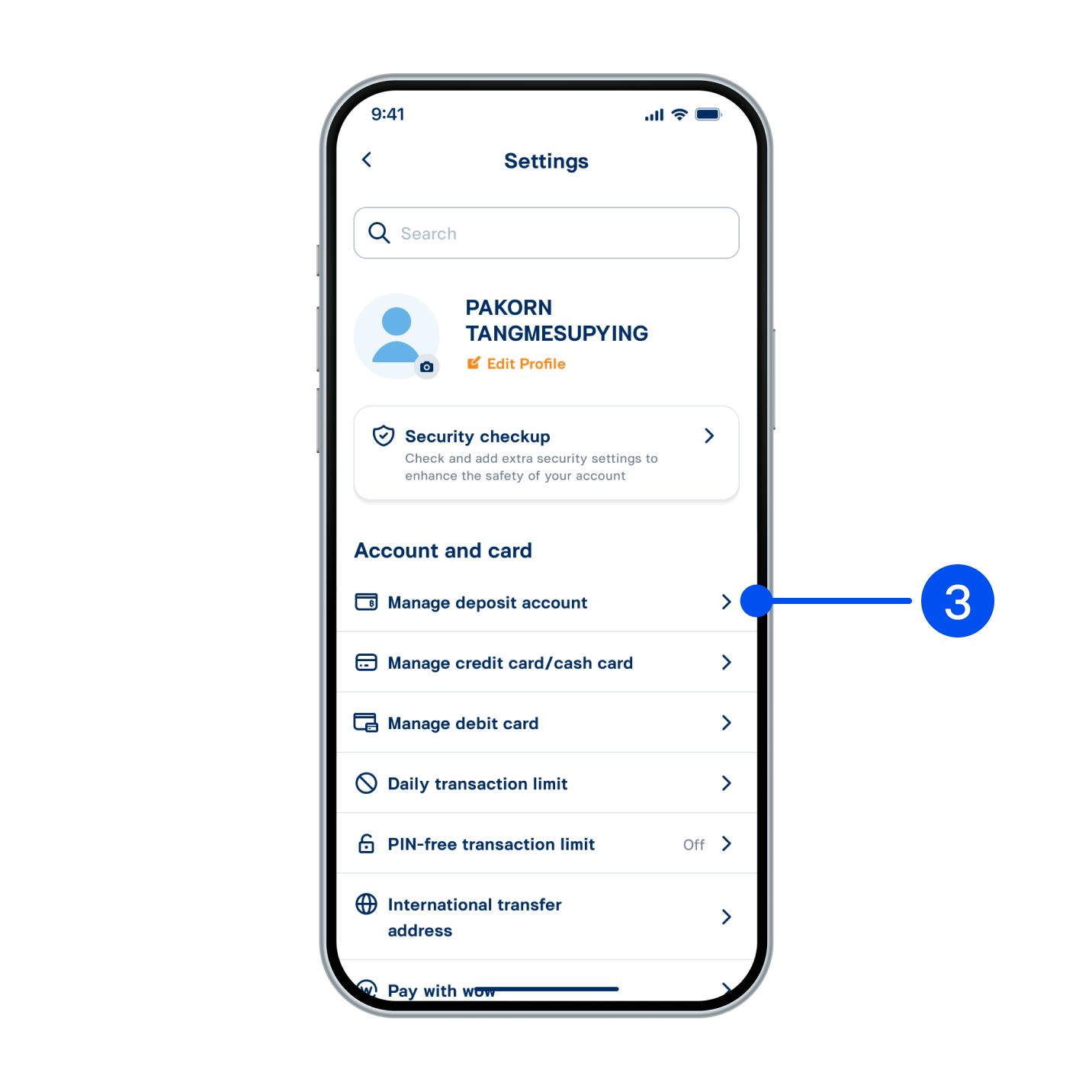 3. In Account and Card, select “Manage deposit account”.