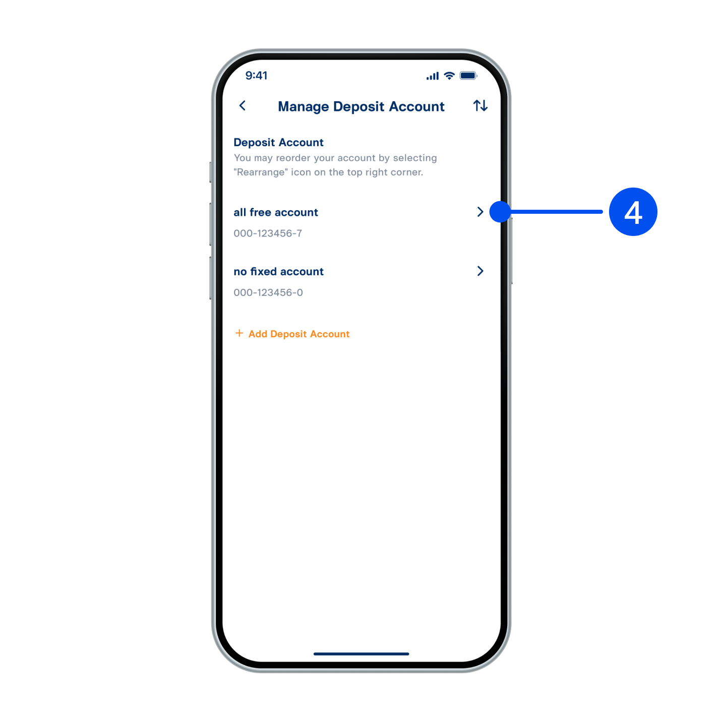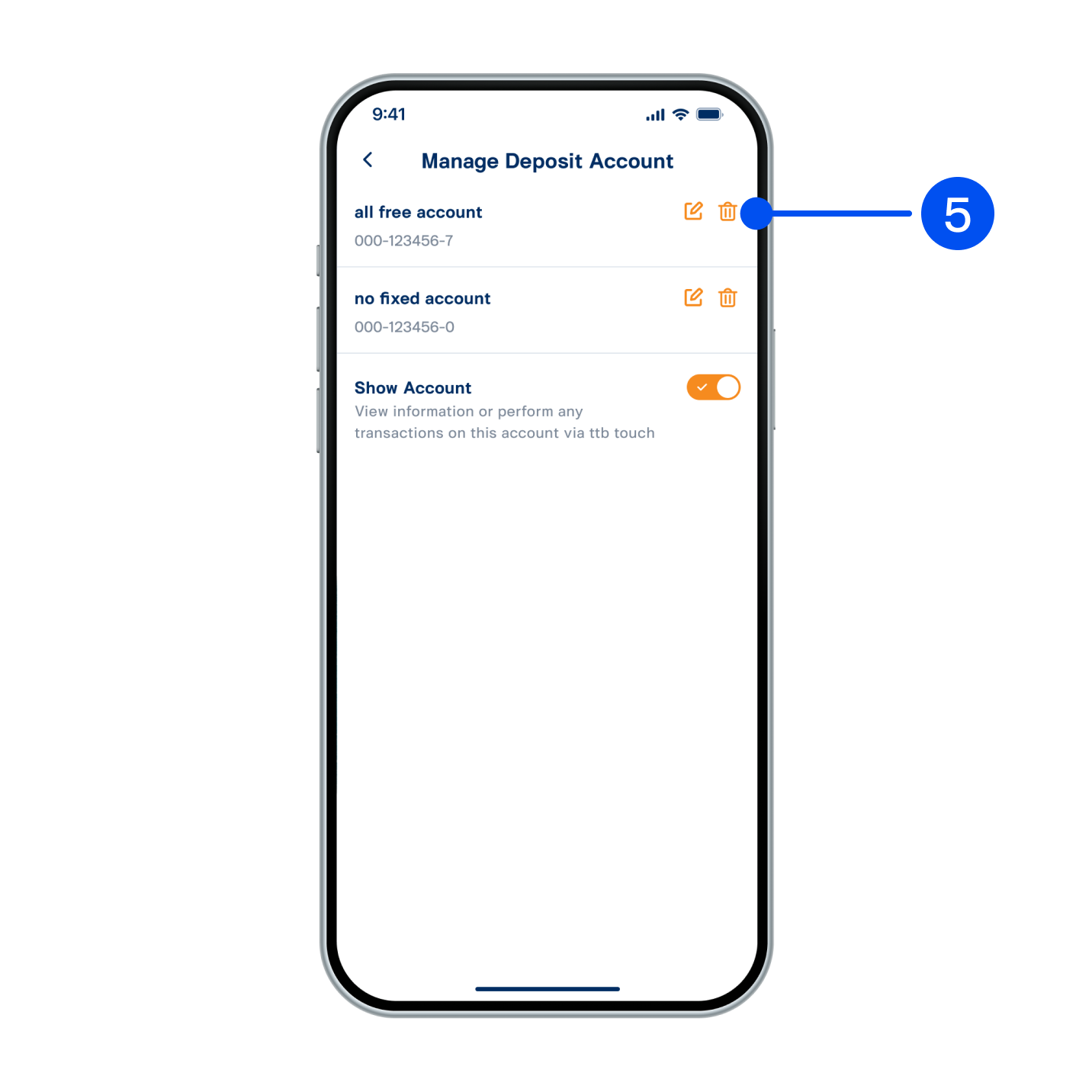 4. Select deposit account type to delete.