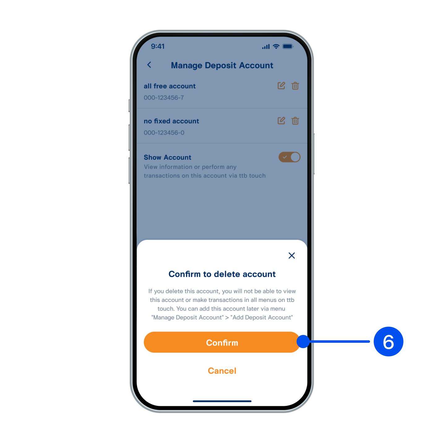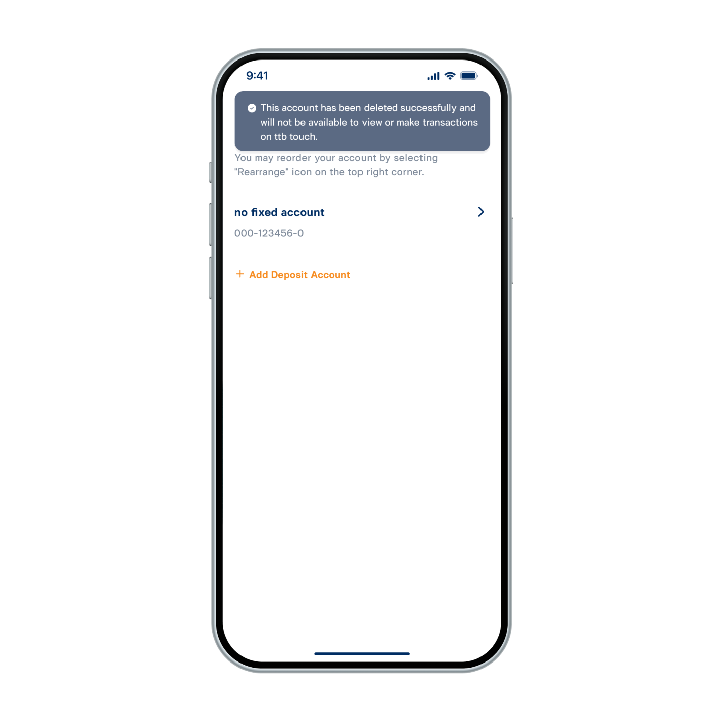 7. Deposit account has been deleted successfully.