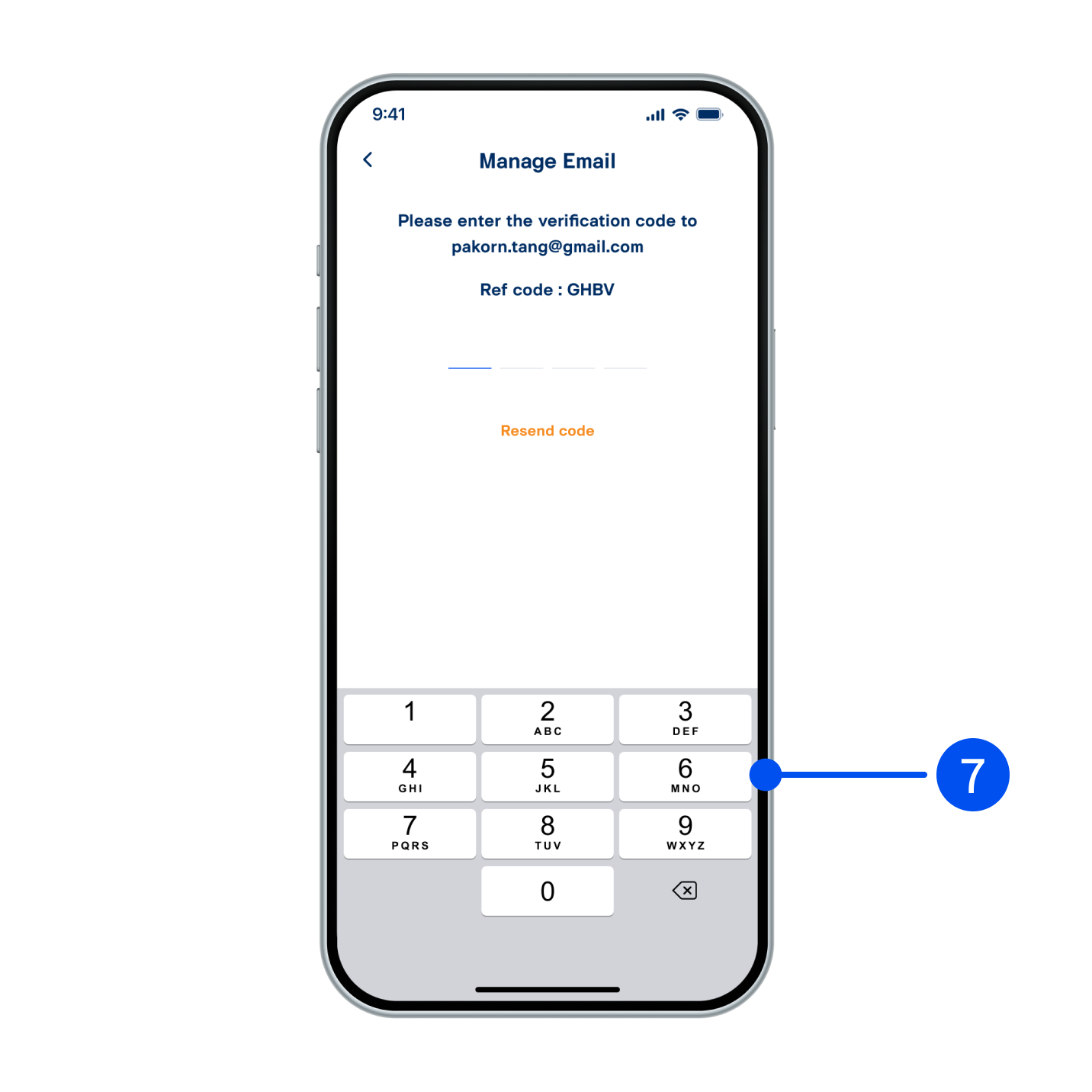 7. The system will send a verification code to the registered email. Enter the code to proceed.