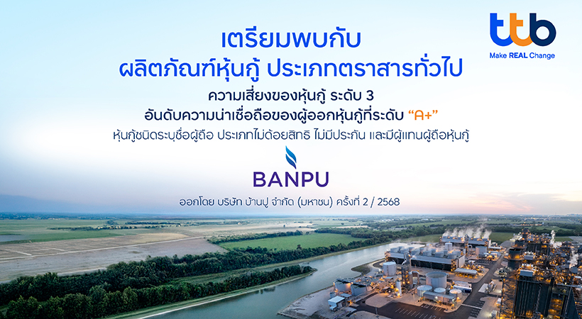 ทีเอ็มบีธนชาต หรือ ทีทีบี เป็นตัวแทนจัดจำหน่ายหุ้นกู้ ประเภทตราสารทั่วไป ออกโดย บริษัท บ้านปู จำกัด (มหาชน) ซึ่งเป็นผู้นำด้านพลังงานที่หลากหลาย ครอบคลุมกลุ่มธุรกิจแหล่งพลังงาน กลุ่มธุรกิจผลิตพลังงาน และ กลุ่มธุรกิจเทคโนโลยีพลังงาน