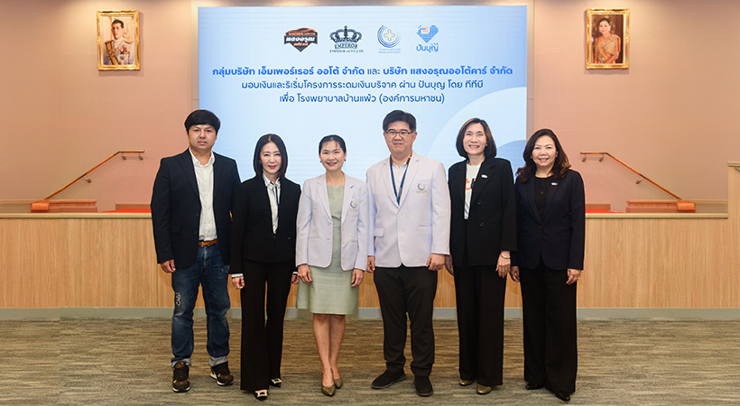 ทีเอ็มบีธนชาต หรือ ทีทีบี ร่วมกับลูกค้าธุรกิจรวมพลังต่อยอดการระดมทุนสนับสนุนโรงพยาบาลท้องถิ่น เพื่อส่งต่อคุณภาพชีวิตที่ดีให้กับผู้ป่วยอย่างยั่งยืน ภายใต้โครงการ “Circle of boon” วัฏจักรพลังการแบ่งปัน โดยนางศิริพรรณ์ ปรุงสิน (ที่ 2 จากขวา) รองประธานเจ้าหน้าที่บริหาร หัวหน้าบริหารความสัมพันธ์ลูกค้าบรรษัทธุรกิจ ทีเอ็มบีธนชาต พร้อมด้วยพันธมิตรลูกค้าธุรกิจ ได้แก่ ดร. ศิริพร วณิชธนานันต์ (ที่ 2 จากซ้าย) ผู้บริหารกลุ่มบริษัท เอ็มเพอร์เรอร์ ออโต้ จำกัด และ นายพรเทพ วงค์อนุ (ซ้ายสุด) ผู้บริหารบริษัท แสงอรุณออโต้คาร์ จำกัด ร่วมมอบเงินบริจาคให้แก่โรงพยาบาลบ้านแพ้ว จ.สมุทรสาคร โดยมี พญ.เสาวณีย์ เกิดดอนแฝก (ที่ 3 จากซ้าย) ผู้อำนวยการ โรงพยาบาลบ้านแพ้ว (องค์การมหาชน) เป็นผู้รับมอบ