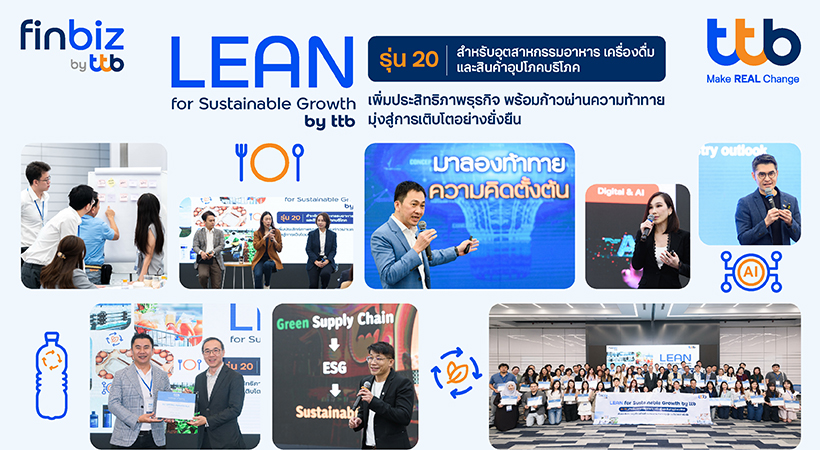 หลักสูตร LEAN for Sustainable Growth by ttb รุ่นที่ 20 เป็นหลักสูตรที่ทางทีทีบีมุ่งมั่นและสนับสนุนให้ผู้ประกอบการในซัพพลายเชนของอุตสาหกรรมอาหาร เครื่องดื่ม และสินค้าอุปโภคบริโภค ที่เข้าร่วมอบรมกว่า 80 บริษัท ได้รับองค์ความรู้ที่ครอบคลุมในหัวข้อการลดต้นทุน เพิ่มประสิทธิภาพ รวมถึงเพิ่มเติมเรื่องเทคโนโลยี AI เพื่อให้สอดรับกับบริบทของโลกธุรกิจยุคใหม่ และสร้างความได้เปรียบทางการแข่งขัน ไม่ว่าจะเป็นการวิเคราะห์ข้อมูลลูกค้า การออกแบบสื่อการตลาด หรือการปรับปรุงกระบวนการทำงานให้แม่นยำและคล่องตัวมากยิ่งขึ้น อีกทั้งยังเสริมต่อองค์ความรู้เรื่องเทรนด์อุตสาหกรรม และแนวทาง ESG ซึ่งมีบทบาทสำคัญในการขับเคลื่อนธุรกิจสู่ความยั่งยืน โดยภายใต้การอบรมตลอดระยะเวลา 6 วันเต็ม ได้รับเกียรติจากทีมอาจารย์ผู้เชี่ยวชาญ และผู้บริหารระดับสูงจากองค์กรชั้นนำในอุตสาหกรรม อาทิ บมจ. ซีพี แอ็กซ์ตร้า บจก. ซี.เจ. มอร์ บจก. ไทยอินโนฟู้ด บมจ. ปตท. น้ำมันและการค้าปลีก บจก. แปลนครีเอชั่นส์ บจก. ฟู้ดแพชชั่น บมจ. หาดทิพย์ บจก. โอชาฟูดแพ็ค และสถาบันวิจัยเพื่อการพัฒนาประเทศไทย (ทีดีอาร์ไอ) มาร่วมถ่ายทอดองค์ความรู้และประสบการณ์ พร้อมให้คำปรึกษาอย่างใกล้ชิด เพื่อให้ผู้ประกอบการสามารถนำไปปรับใช้ได้จริงในธุรกิจ