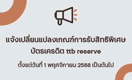 แจ้งเปลี่ยนแปลงเกณฑ์การรับสิทธิพิเศษบัตรเครดิต ttb reserve