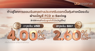 ก้าวสู่โลกการออมเงินสกุลต่างประเทศ รับดอกเบี้ยคุ้มค่าเหนือระดับ ผ่านบัญชี FCD e-Saving