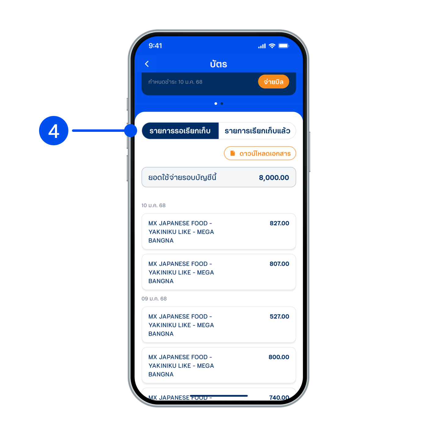 4. เลื่อนลงเพื่อดูรายการรอเรียกเก็บ