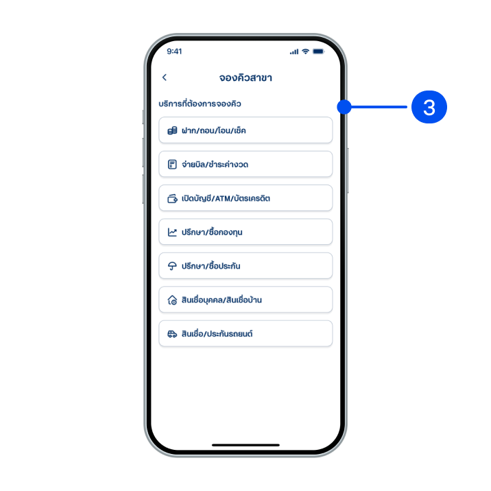 3. เลือกธุรกรรมที่ต้องการจองคิว