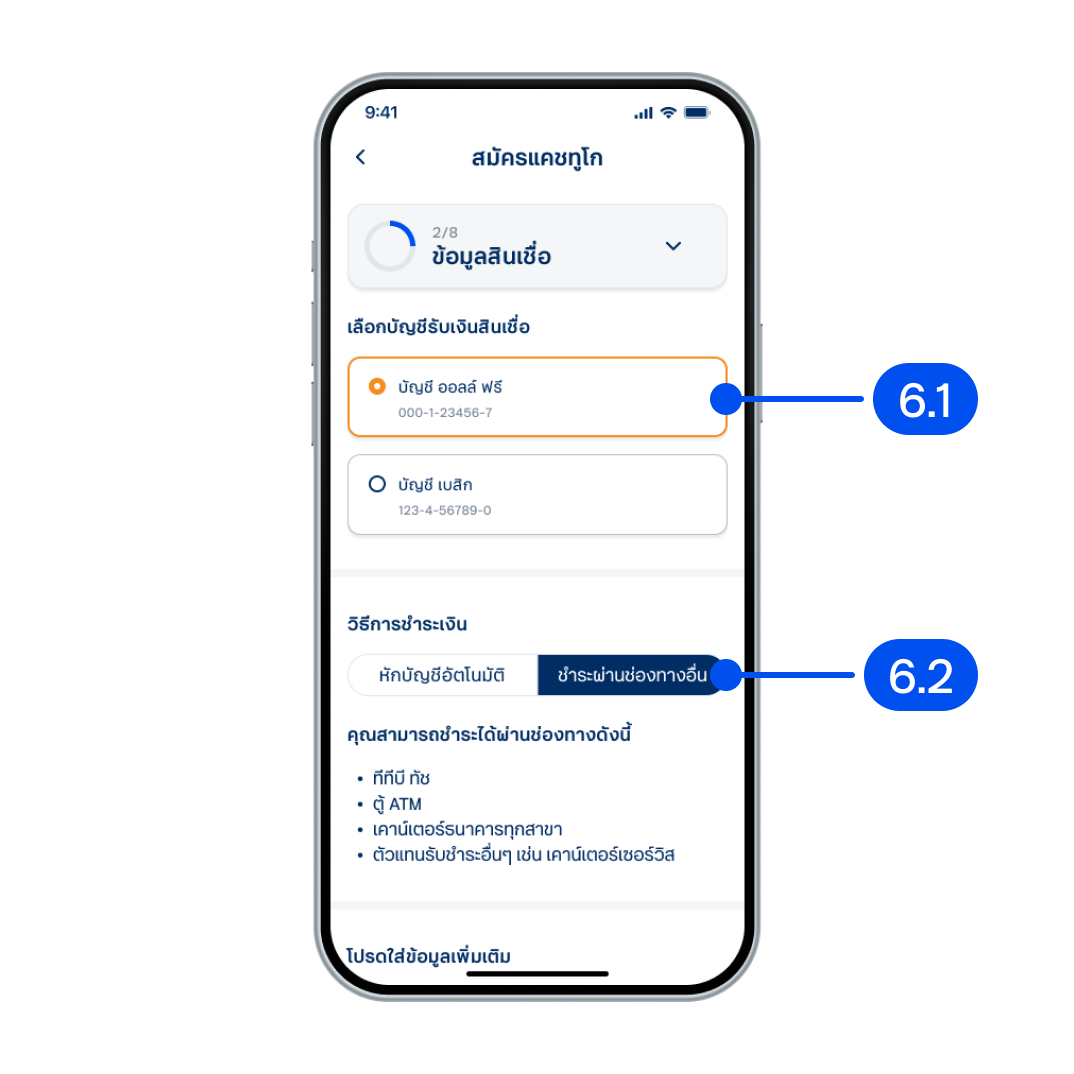 6.1) เลือกบัญชีรับเงินสินเชื่อ