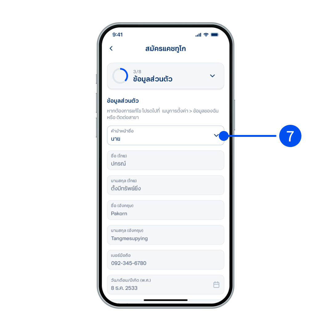 7. ใส่ข้อมูลส่วนตัว และเลือก “ถัดไป”