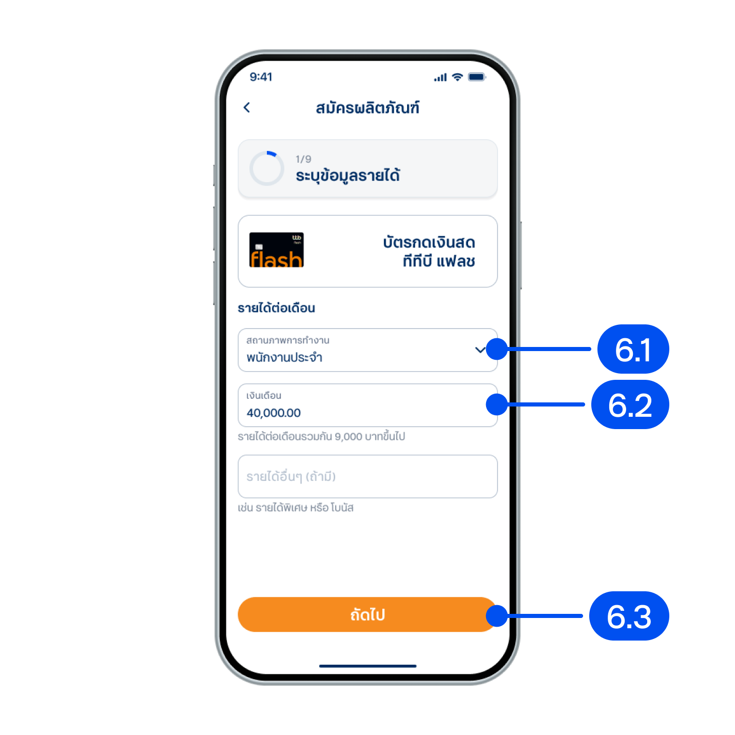6. ในขั้นตอนระบุข้อมูลรายได้