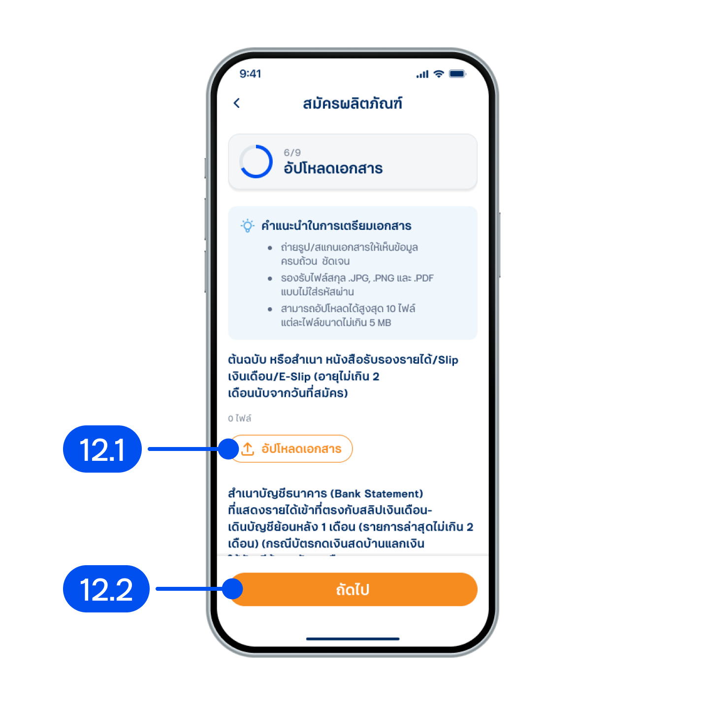 12. ในขั้นตอนการอัปโหลดเอกสาร