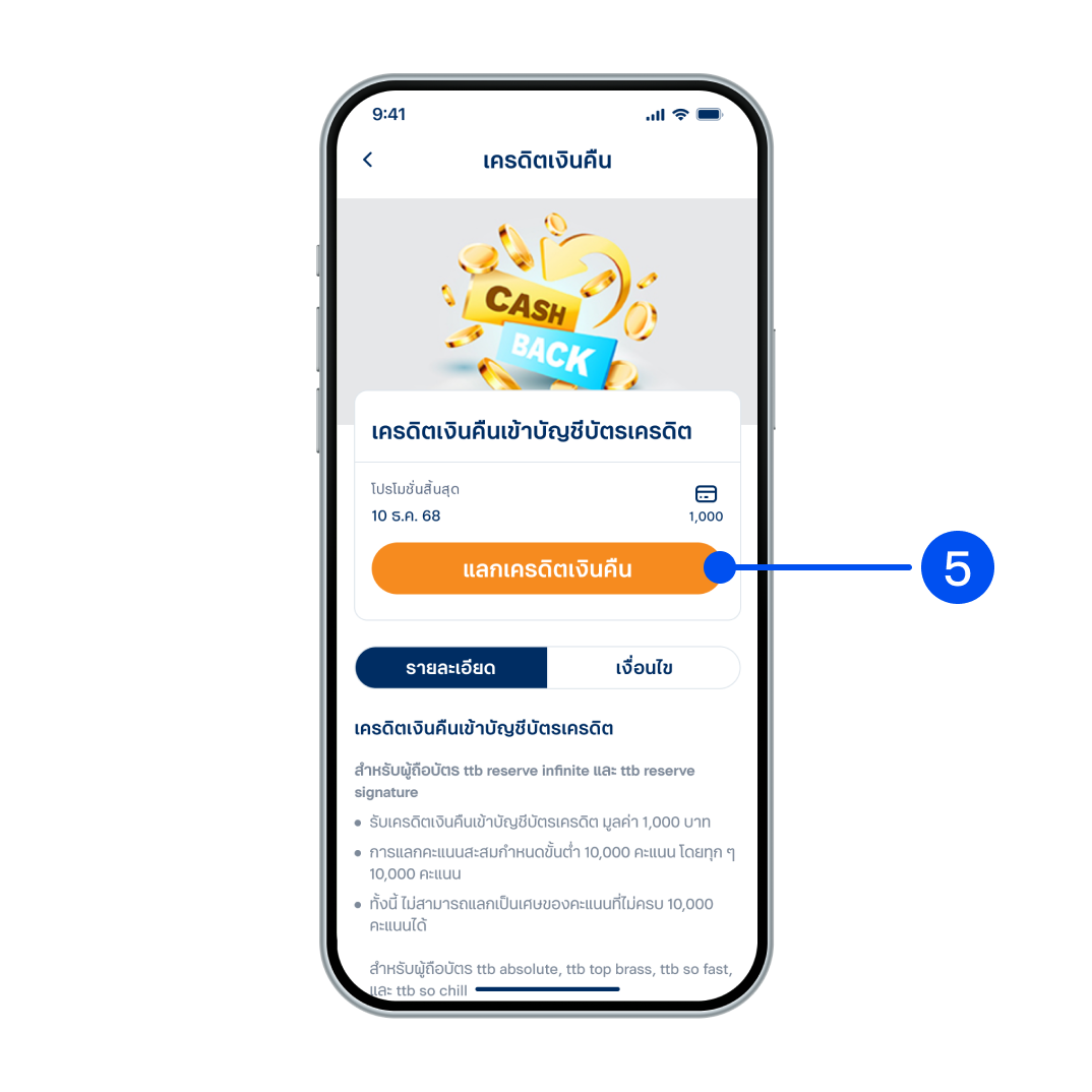 5. อ่านรายละเอียดบริการ จากนั้นเลือก “แลกเครดิตเงินคืน”