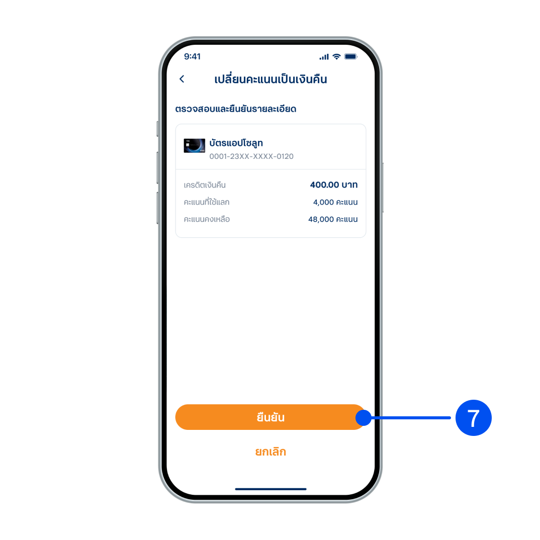7. ตรวจสอบรายละเอียดการแลกคะแนน จากนั้นเลือก “ยืนยัน”