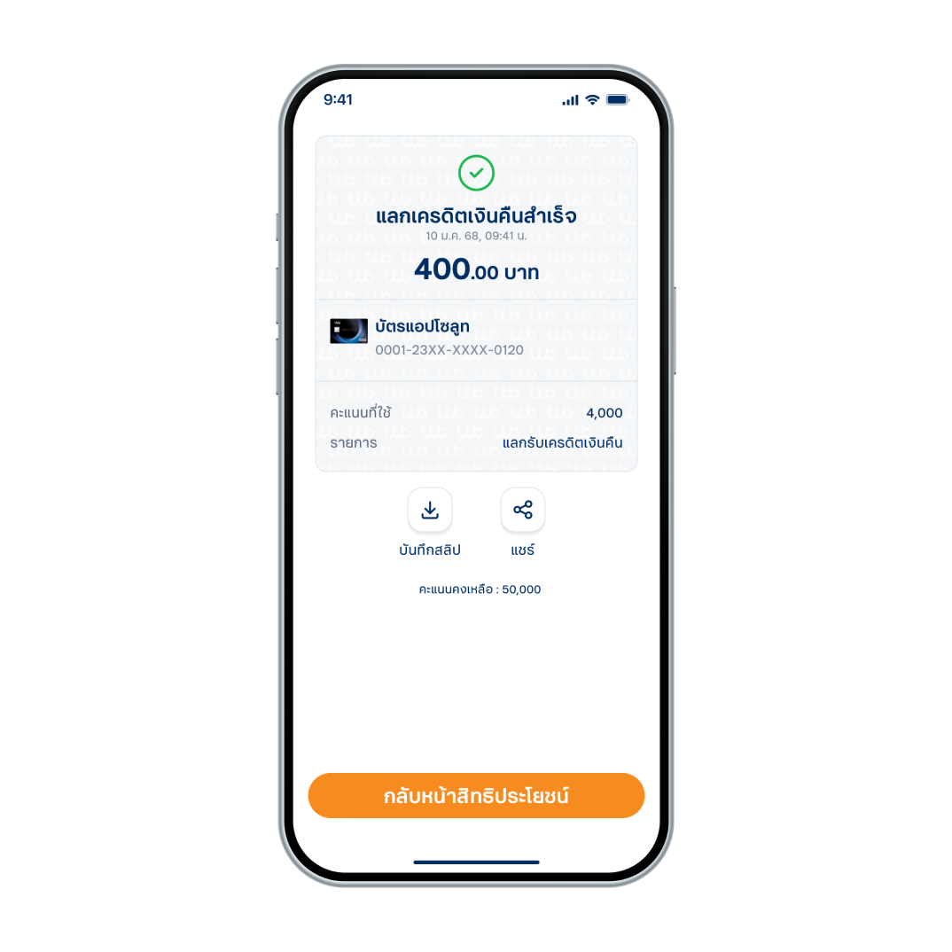 9. แลกคะแนนบัตรเครดิตเป็นเงินคืนสำเร็จ